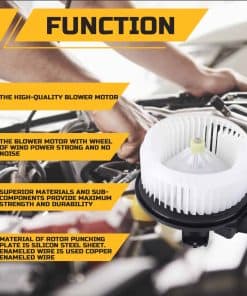 El Motor soplador de calentador de aire acondicionado JUEDIMA con jaula de ventilador es compatible con una variedad de vehículos, incluidos Journey, ES300h, ES350, GX460, RX350, RX450h, 4Runner, Avalon, Camry, Highlander, Tundra y Venza. Este motor soplador de alta calidad puede restaurar rápidamente el aire fresco en el automóvil, reduciendo la fatiga del conductor y mejorando la seguridad durante la conducción. Con el viento potente y silencioso, este motor soplador está hecho con materiales superiores para proporcionar máxima resistencia y durabilidad, incluyendo chapa de acero al silicio y alambre esmaltado de cobre. Su instalación es directa y sencilla, ideal para reemplazar un motor soplador de calefacción y aire acondicionado que no funcione correctamente. Favor de verificar la compatibilidad con su vehículo antes de realizar la compra.