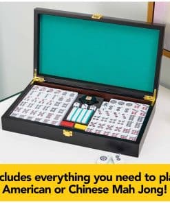 Desde llegar a las costas americanas en los años 20, el Mahjong se ha convertido en el juego preferido de generaciones de aficionados a los juegos clásicos. El Mahjong americano, basado en la versión china, es un juego de estrategia, habilidad y suerte para cuatro jugadores, que utilizan azulejos adornados con hermosos símbolos chinos. Similar al juego de cartas rummy, el objetivo es crear conjuntos de azulejos que coincidan con los azulejos de una mano específica predefinida, eligiendo y descartando azulejos de su pared. Nuestro set incluye instrucciones detalladas y una Guía de Juego Rápido para jugadores que son nuevos en las reglas y tácticas del Mahjong. Muestre a sus oponentes su compromiso con el juego cuando abra el estuche de almacenamiento de madera forrado, luciendo orgullosamente los hermosos azulejos bicolor y otros componentes del juego. Los azulejos tienen el tacto apropiado y son una alegría para recoger y jugar. Regale este set Legacy como un regalo extra especial para el jugador de su lista o haga que su próxima reunión con amigos sea un evento memorable. El set Deluxe Mahjong Legacy es para 4 jugadores, a partir de 8 años en adelante.