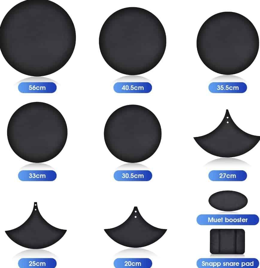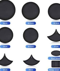 Especificación: Condición: Nuevo Material: Espuma de goma Color: Negro Diámetro de almohadilla de batería: Aprox. 56cm/22in, 40.5cm/16in, 35.5cm/14in, 33cm/13in, 30.5cm/12in Diámetro de almohadilla de platillo: Aprox. 27cm/11in, 25cm/10in, 20cm/8in Peso: Aprox. 686 g Lista de paquetes: 5 almohadillas de batería 3 almohadillas de platillo 1 refuerzo de bombo 1 almohadilla de caja 4 clips Nota: Solo el juego de silenciadores de batería, la batería y otros elementos son accesorios de fotografía (no incluidos en la lista).