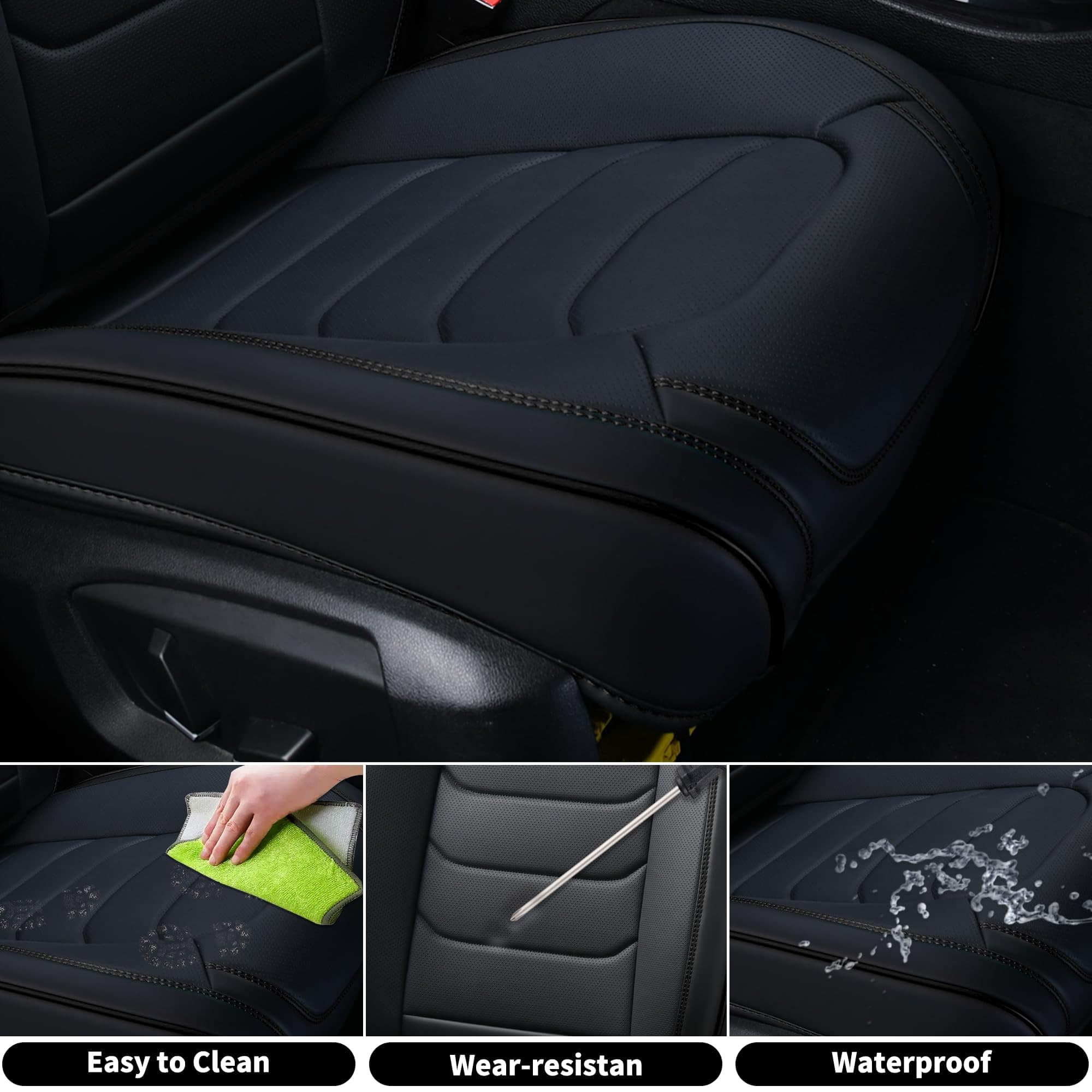 1. : La funda de asiento automotriz está hecha de cuero artificial de alta calidad y fabricada con tecnología de material compuesto multicapa. Es suave y cómoda, impermeable y transpirable, y puedes obtener una mejor experiencia de conducción. La funda de asiento de cuero sintético transpirable adopta una esponja de rebote que ofrece un toque cómodo y una resiliencia superior para mantener su forma.
