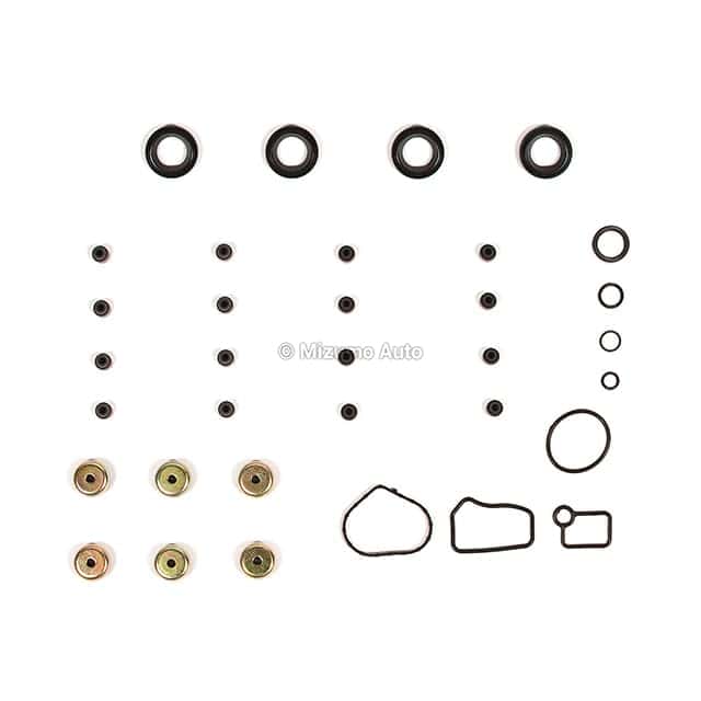 Este artículo incluye: junta de culata de acero de múltiples capas (MLS), junta de tapa de válvulas, sellos de vávula de admisión, junta de colector de admisión, junta de colector de escape, sello delantero del árbol de levas, anillos en O, sello delantero del cigüeñal, sello trasero del cigüeñal, junta de la bomba de agua, otras juntas pequeñas, sellador de silicona RTV