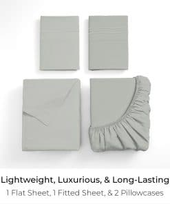 1. Lujo ligero para confort durante todo el año: Diseñadas para ser aireadas y ultraligeras, nuestras sábanas Mellanni ofrecen comodidad sin esfuerzo en cada estación. Su construcción delgada y transpirable mejora el flujo de aire, absorbe la humedad y seca rápidamente. A pesar de su sensación ligera, estas sábanas son excepcionalmente fuertes y más duraderas que el algodón, resistiendo manchas, rasgaduras y desgaste por lavados frecuentes. Perfectas para hogares ocupados con niños o mascotas.