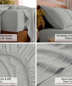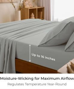 4. Ajuste perfecto y certificado seguro – Bolsillos profundos adaptados para colchones de hasta 16″ de profundidad, haciéndolas ideales para toppers de espuma viscoelástica, colchones de aire y más. Una banda elástica cosida asegura un ajuste ceñido y seguro. Certificado OEKO-TEX(R) STANDARD 100 (22.HUS.40981, Hohenstein), probado para más de 1,000 sustancias nocivas para su tranquilidad.