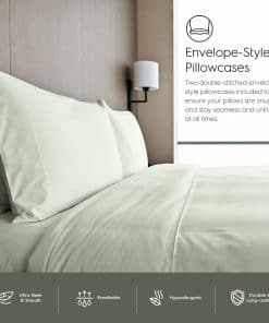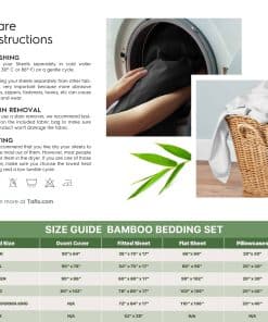 Las sábanas de Tafts están hechas con la más alta calidad de 100% Viscosa derivada del bambú, ofreciendo una suavidad lujosa y sedosa para ayudarte a tener una noche de sueño soñada. Esta sábana está certificada por OEKO-TEX Standard 100, lo que garantiza la seguridad textil desde el hilo hasta el producto final. No se ha utilizado ninguna sustancia dañina en el proceso de fabricación. El tejido de fibras de bambú es naturalmente termo-regulador, manteniéndote fresco y cómodo en todas las estaciones. Con propiedades de absorción de humedad, estas sábanas son perfectas para personas calurosas o con piel sensible. El juego de sábanas completo incluye una sábana plana, una sábana ajustable, dos fundas de almohada Queen y una bolsa de tela. Todas las piezas están diseñadas con costuras dobles de alta calidad para una mayor durabilidad. El tejido de satén superior es suave y duradero, incluso más que el algodón de 1500 hilos, y se vuelve aún más suave con cada lavado. Las sábanas tienen bolsillos profundos de 17 pulgadas con elástico de 360 grados para mantenerlas en su lugar durante la noche. Sosteniblemente obtenidas, estas sábanas de bambú son amigables con el medio ambiente. Además, cada juego de sábanas viene con una garantía de por vida contra defectos en materiales y mano de obra, para que puedas dormir tranquilo sabiendo que estás cubierto. No pierdas la oportunidad de experimentar la comodidad y la calidad excepcionales de las sábanas de Tafts.