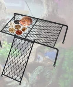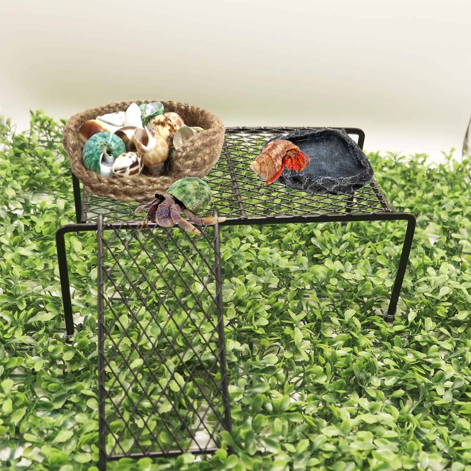 Soporte para alimentos de cangrejos ermitaños: proporciona más espacio vertical en el tanque y sostiene fácilmente el cuenco de comida pequeño. Tamaño: soporte para alimentación 26,5 x 15 x 11,5 cm / 10,41 x 5,89 x 4,52 pulgadas, escalera 18 x 8,5 cm / 7,07 x 3,34 pulgadas. Instalación fácil: el paquete incluye 1 soporte para alimentación y 1 escalera. La instalación y la remoción son muy sencillas, proporcionando comodidad a los dueños de mascotas. Resistente y duradero: nuestro soporte para alimentación de cangrejos ermitaños está expertamente fabricado en hierro, garantizando durabilidad a largo plazo. Adecuado para diversas especies: diseñado para cangrejos ermitaños, lagartos, gecos y serpientes, esta plataforma atiende a una variedad de reptiles. Contempla cómo exploran, trepan e interactúan con esta decoración de hábitat envolvente, promoviendo su bienestar general.