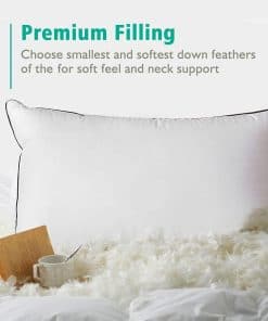 Funda suave: Actualizada a 233 hilos de 100% algodón orgánico, nuestra almohada de plumas para dormir es suave, amigable con la piel y transpirable. El proceso con tela de alta densidad a prueba de plumas puede evitar efectivamente que las plumas internas se filtren. Suave y esponjosa: El relleno de mezcla de plumas y plumón hace que nuestra clásica almohada de plumas sea excepcionalmente suave mientras proporciona un mejor soporte para el cuello y la máxima comodidad para la cabeza y el hombro. Los materiales de alta calidad garantizan la mejor experiencia de sueño. Diseño único: Doble pespunte con ribete negro hace que nuestra almohada de plumas sea hermosa y elegante para uso diario. La almohada de soporte medio es una elección de regalo ideal para su familia y amigos. Se recomienda dejar las almohadas para dormir algunas horas para que se recuperen por completo antes de usarlas. Calidad de fábrica superior: Lavable a máquina y secar a temperatura baja. Puede golpear su almohada de tamaño estándar con la mano para que vuelva rápidamente a su forma original después de varios días de uso. Se recomienda usar con funda de almohada, almohadones o cubierta de almohada. ¡Compre con confianza de la marca de fábrica – APSMILE!