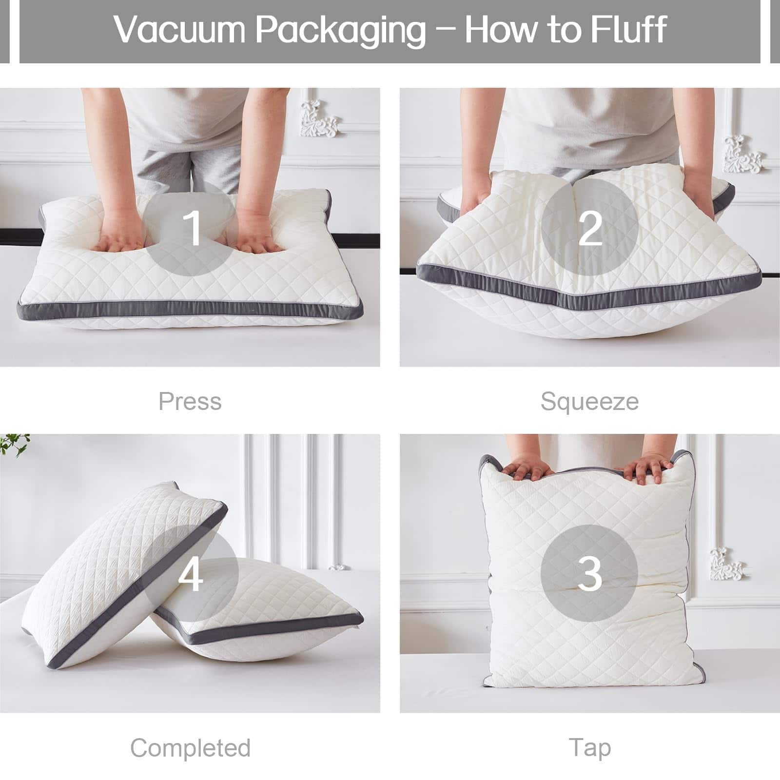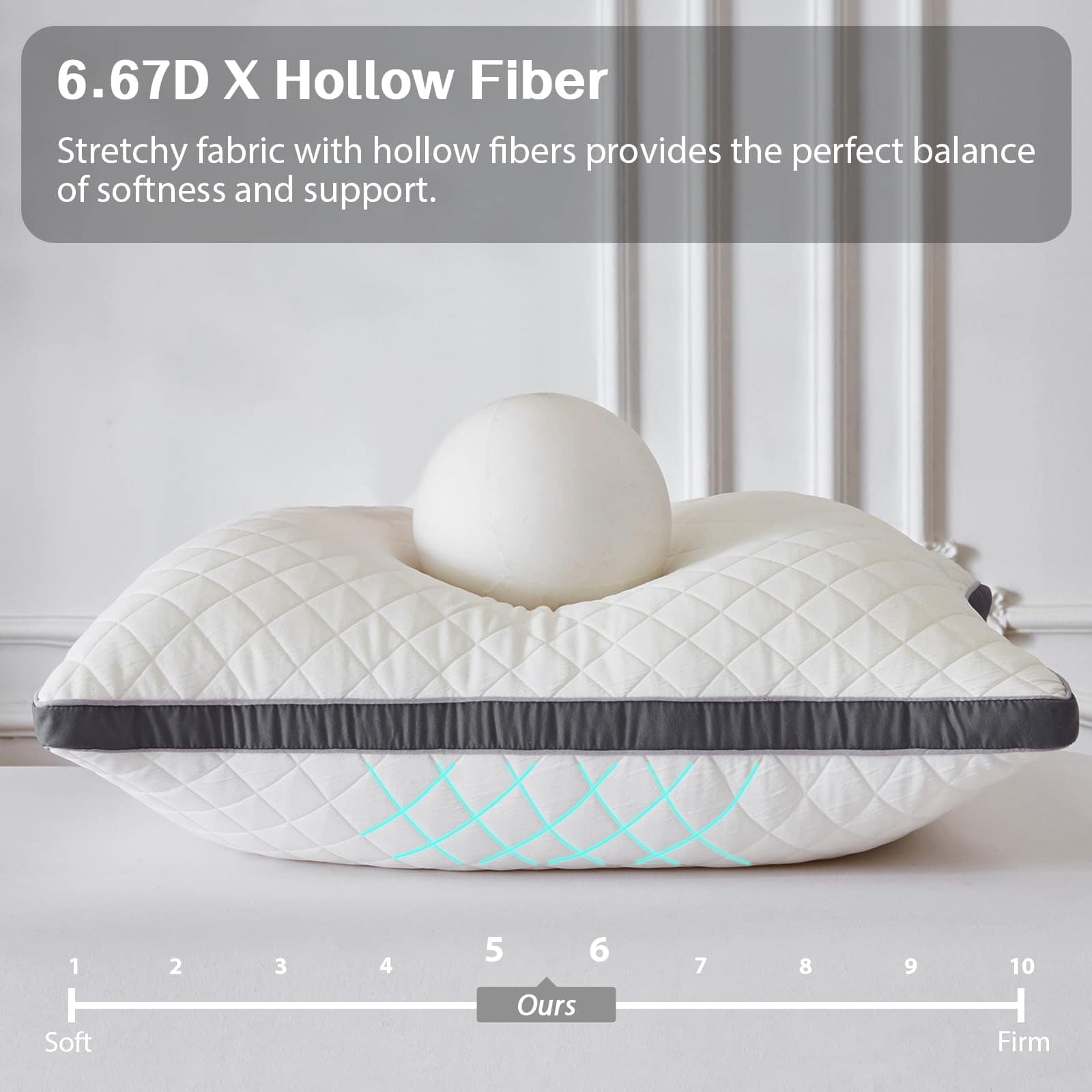 2. Almohada de cama de firmeza media: Utilizamos fibras de alta calidad, el diámetro de cada fibra puede ser preciso hasta 6.67D bajo el instrumento, proporcionando un núcleo de soporte para las almohadas king. El tejido elástico proporciona suficiente espacio para que los componentes de la fibra se estiren, esforzándose por lograr un equilibrio entre soporte y suavidad, brindándote justo la cantidad adecuada de comodidad.