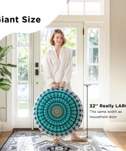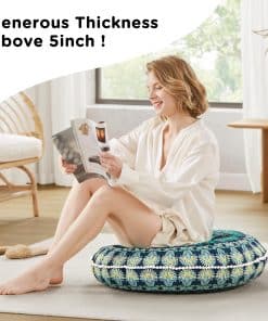 1. INSERTO Y FUNDA DE 2 EN 1: Este cojín redondo blanco es el ajuste perfecto con esta funda de mandala. Comprar ambos por separado a menudo resulta en una calidad inferior de uno, por lo que no solo ahorras tiempo, sino que tu producto también es consistente. Este cojín está agregado con espuma de memoria triturada premium que tiene un buen rebote para que no se aplane como los cojines típicos. 2. ILUMINA TU HOGAR: Elige nuestra paleta de colores distintos para darle vida a la decoración de tu hogar. La funda boho redonda es una hermosa pieza de arte mandala, hecha con tela segura para la sensibilidad, presentando un lindo ribete de pompones blancos. Niños, adultos, incluso mascotas lo amarán. Funda lavable a máquina para liberar tus manos. 3. TAMAÑO PERFECTO PARA CUALQUIER COSA: El diámetro de nuestro inserto de cojín es de aproximadamente 32 pulgadas con un grosor de aproximadamente 5 pulgadas. Por favor, permita ligeras desviaciones de tamaño debido a la medición manual. Después de ser colocado en nuestra funda redonda de 32 pulgadas, el cojín medirá aproximadamente 30 pulgadas de diámetro y 6 pulgadas de altura. ¡Simplemente la proporción perfecta de tamaño y comodidad! 4. CÓMO CERRAR LA CREMALLERA: Para asegurar una fácil apertura y cierre de la cremallera, siempre mantenga el lado con el ribete de pompones en la parte inferior. Como recordatorio especial, para evitar que el ribete de pompones se enganche y enrede la cremallera al cerrarla, por favor tenga paciencia y ordene bien el ribete de pompones antes de cerrarlo lentamente. 5. CÓMPRALO SIN PREOCUPACIONES: Este cojín está hecho para durar. Si tienes un problema, nos gustaría encargarnos de él por ti y respaldamos nuestros productos para que puedas relajarte y disfrutar de la comodidad y el confort.