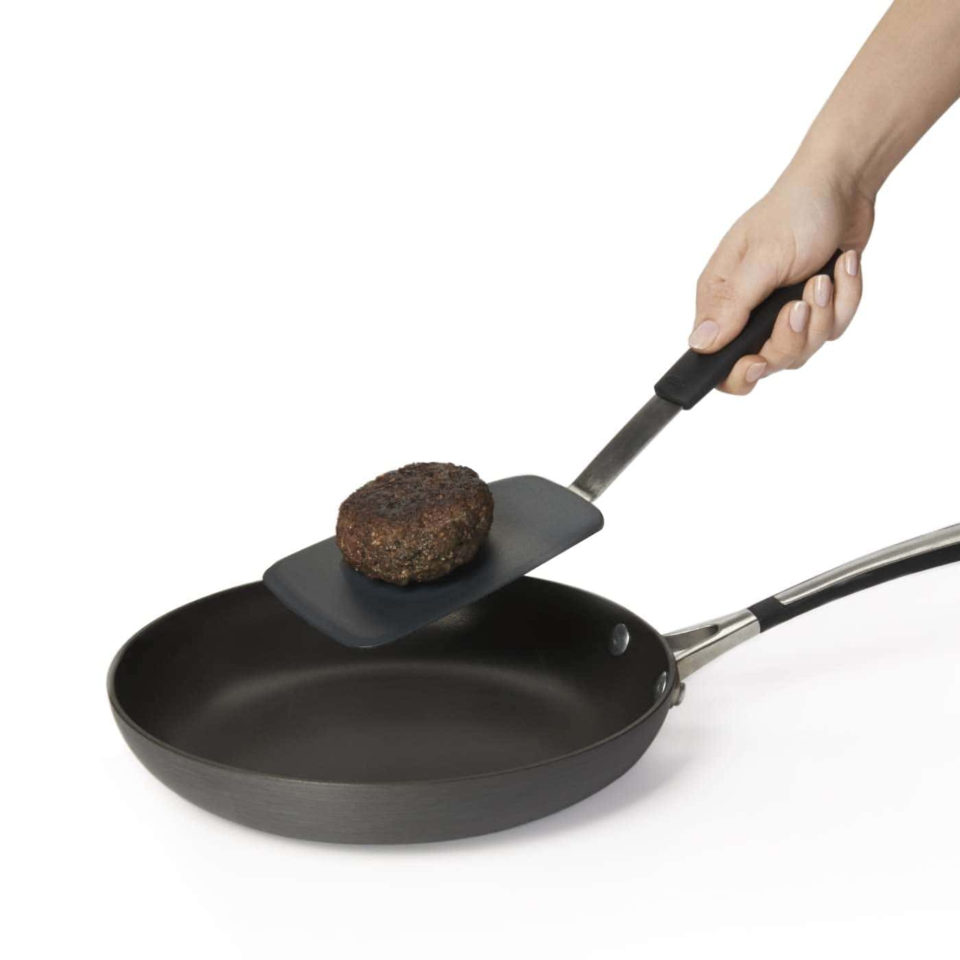 Las espátulas de silicona flexible OXO Good Grips combinan la resistencia del acero inoxidable con las ventajas de la silicona. La capa exterior de silicona, resistente al calor hasta 600 grados Fahrenheit y segura para utensilios de cocina antiadherentes, está unida a un núcleo de acero inoxidable flexible para mayor estabilidad. Las espátulas tienen bordes delgados y flexibles que se deslizan fácilmente debajo de todos los alimentos y son perfectas para voltear alimentos frágiles manteniéndolos intactos. La espátula de silicona flexible grande se puede utilizar para voltear huevos, hamburguesas, crepas y más. Todas las espátulas de silicona flexible tienen agarres suaves, cómodos y antideslizantes, y son los compañeros perfectos para utensilios de cocina y repostería antiadherentes.