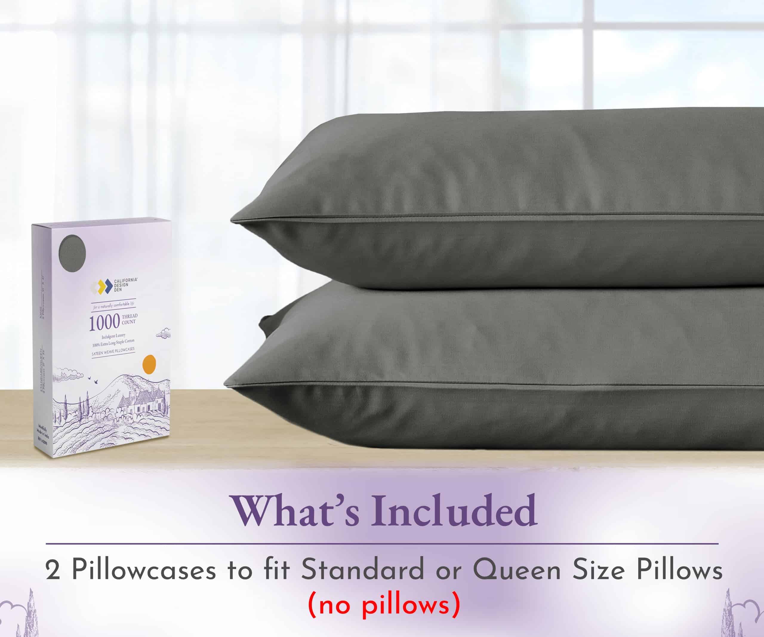 Juego de 2 Fundas de Almohada Gris de Tamaño Queen con 1000