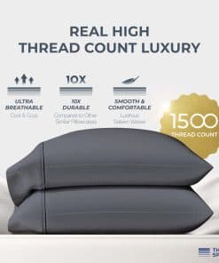 Eleva tu sueño con el juego de 2 fundas de almohada de algodón egipcio de 1500 hilos de Thread Spread. Experimenta el lujo verdadero con nuestras meticulosamente diseñadas fundas de almohada, que ofrecen una suavidad y durabilidad incomparables. Hechas de algodón de fibra extra larga, estas fundas de almohada king size redefinen la comodidad con su exquisita calidad. Disfruta de la sensación sedosa de nuestras fundas de almohada king size de algodón egipcio mientras acarician suavemente tu rostro. El tejido de satén les da un brillo lustroso, mientras que las propiedades naturales de enfriamiento del algodón egipcio garantizan una comodidad feliz toda la noche. Perfecto para aquellos que buscan la máxima relajación.