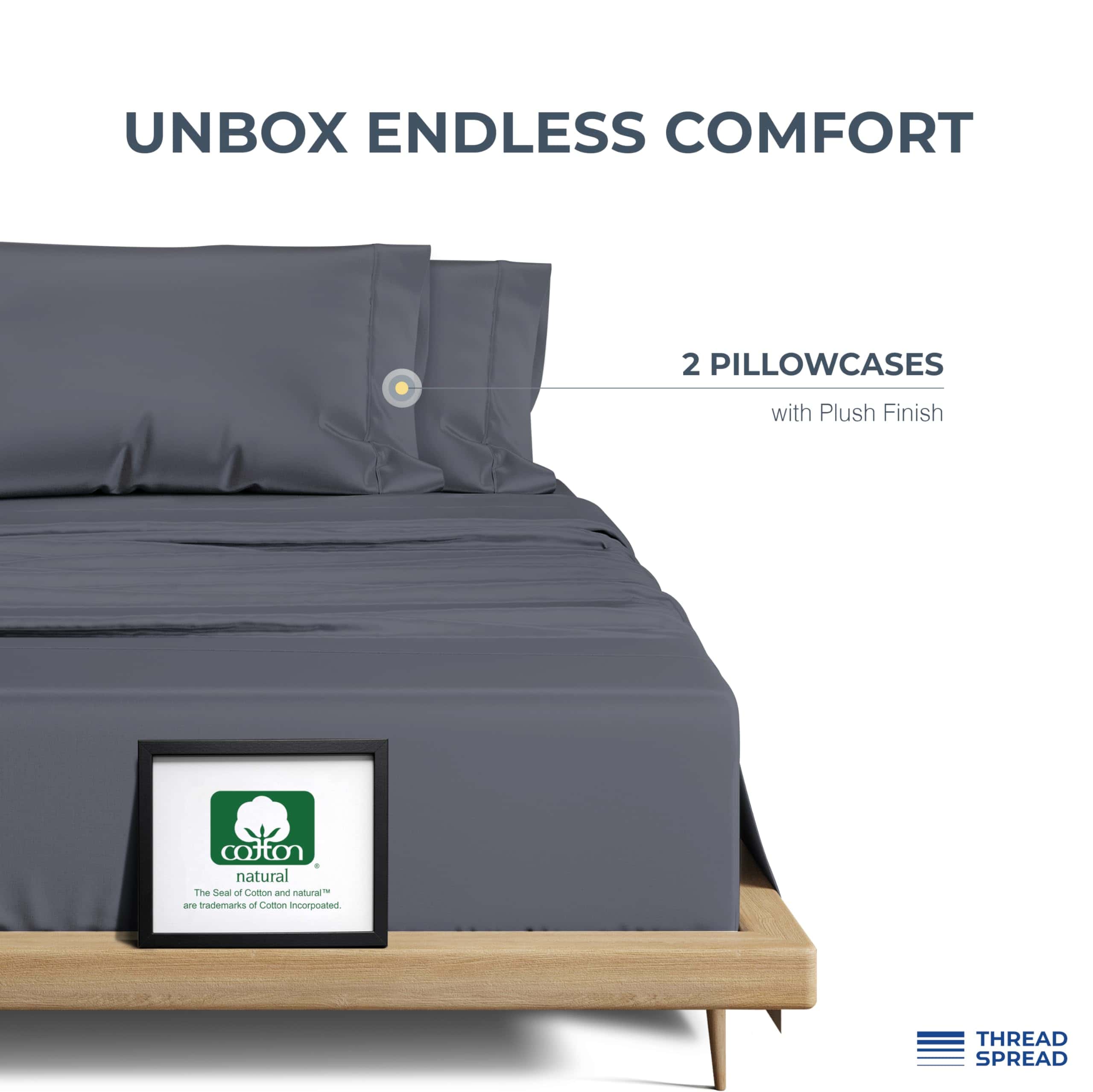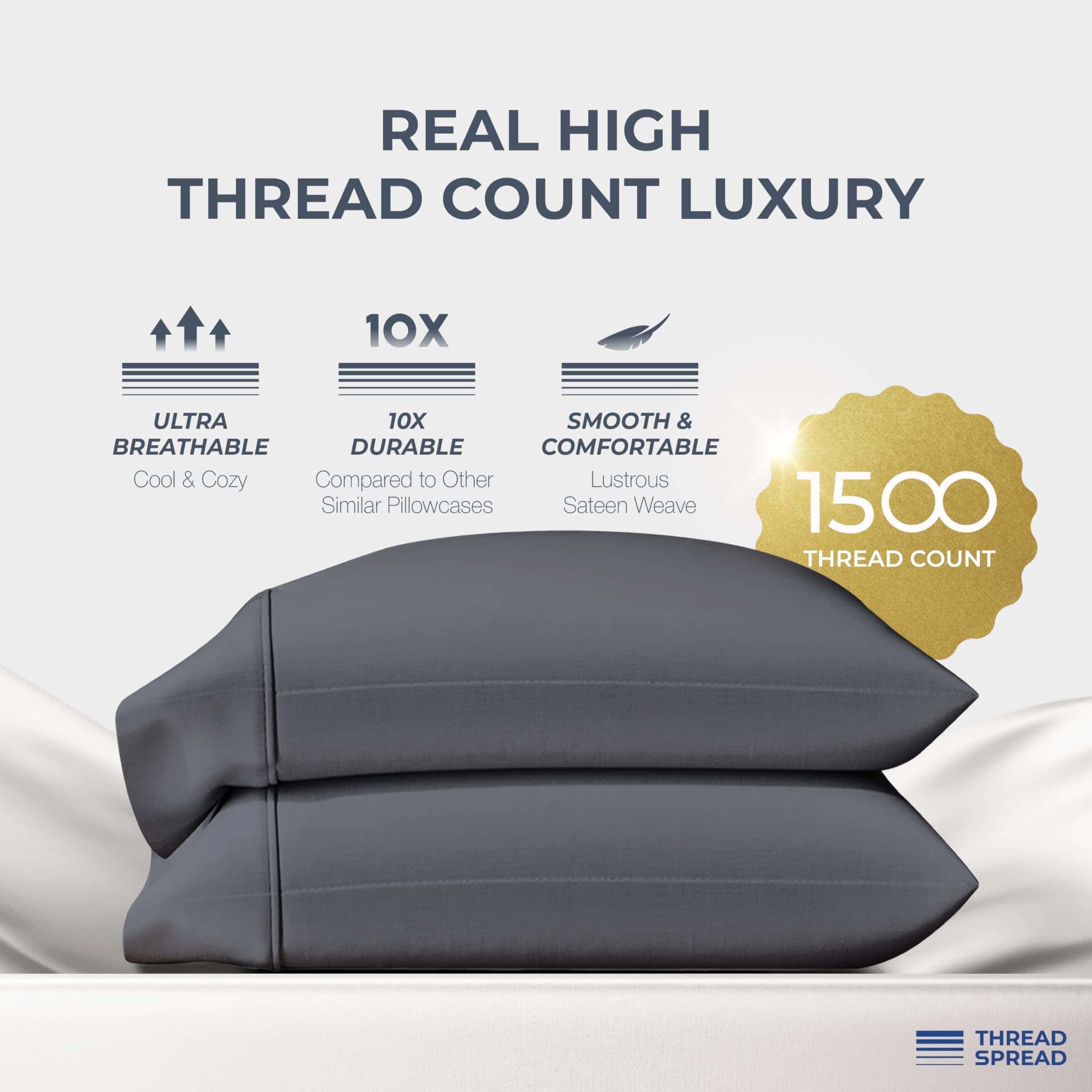 Mejora la elegancia de tu conjunto de ropa de cama con nuestras fundas de almohada king size de Thread Spread. Con un cierre de sobre para un fácil inserto, este juego de 2 fundas de almohada king size ofrece un aspecto pulido y sofisticado. Cada pack incluye 2 fundas de almohada king size (21 x 41 pulgadas), meticulosamente diseñadas para combinar con nuestros juegos de sábanas de 1500 hilos. Sumérgete en la sensación suntuosa de nuestras fundas de almohada de algodón egipcio, exquisitamente densas y brillantes. Reminiscentes de las encontradas en hoteles de clase mundial, ofrecen una experiencia premium. Validadas de forma independiente por OEKO-TEX, están libres de sustancias dañinas, haciéndolas un regalo ideal o una adición para tu dormitorio.