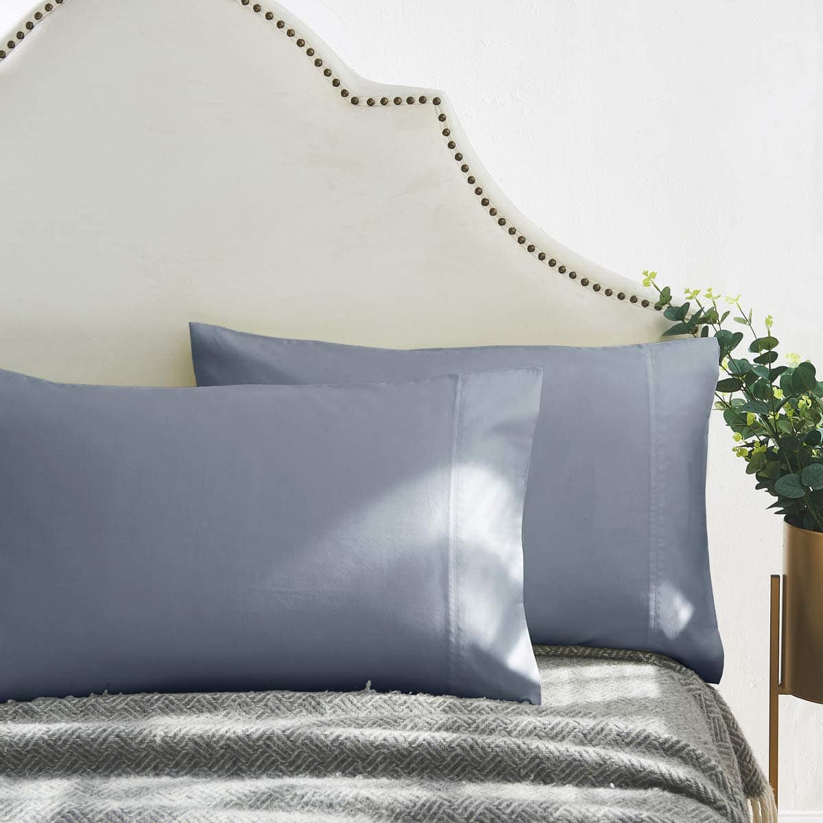 Juego de 2 fundas de almohada tamaño King de -Azul Gris