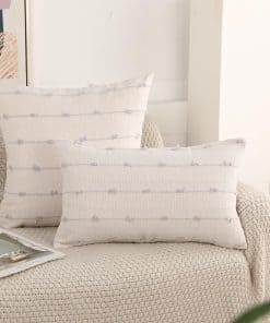 Las fundas de cojín Boho de NUYECY vienen en un juego de dos, con un tamaño de 28×28 pulgadas (70 x 70 cm) cada una. El diseño chic con rayas clásicas y borlas lindas le da un estilo minimalista europeo que combina bien con la decoración de estilo bohemio de granja, mediados de siglo, retro y chic. Las fundas están tejidas con borlas grises y tela base blanca rota, con un diseño de doble cara que las hace versátiles para decoraciones modernas. La manufactura de las fundas incluye una cremallera invisible del mismo color que la funda de almohada, lo que las hace elegantes y fáciles de quitar para lavado. Cada costura está reforzada para hacer que la funda de almohada sea más duradera. Para mantener las fundas en su mejor estado, se recomienda lavar a mano por separado y darles la vuelta para lavarlas. Al ser fundas tejidas con mechones, la primera limpieza puede tener algunas fibras flotantes, lo cual es normal. El paquete contiene 2 fundas de almohada sin rellenos, y la satisfacción del cliente es la máxima prioridad en la calidad del producto.