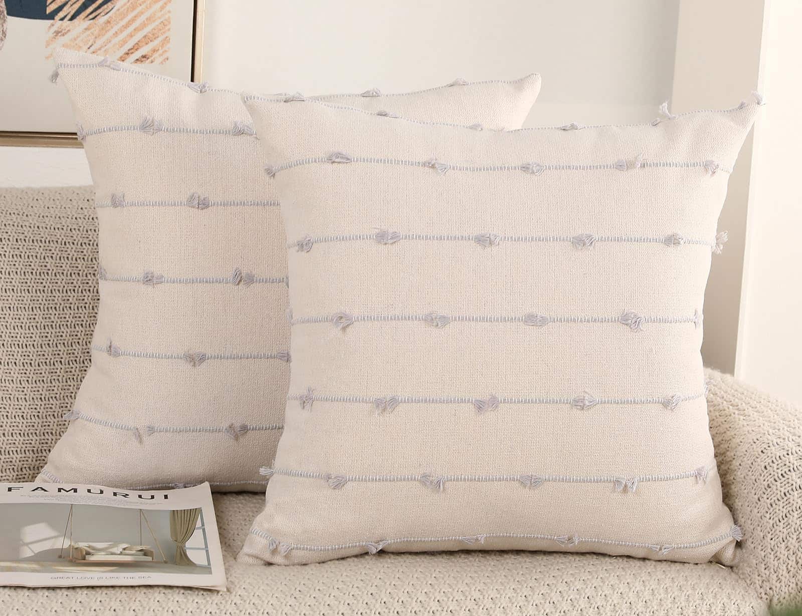 Juego de 2 Fundas de Cojín Boho 28×28, Gris Piedra y Blanco