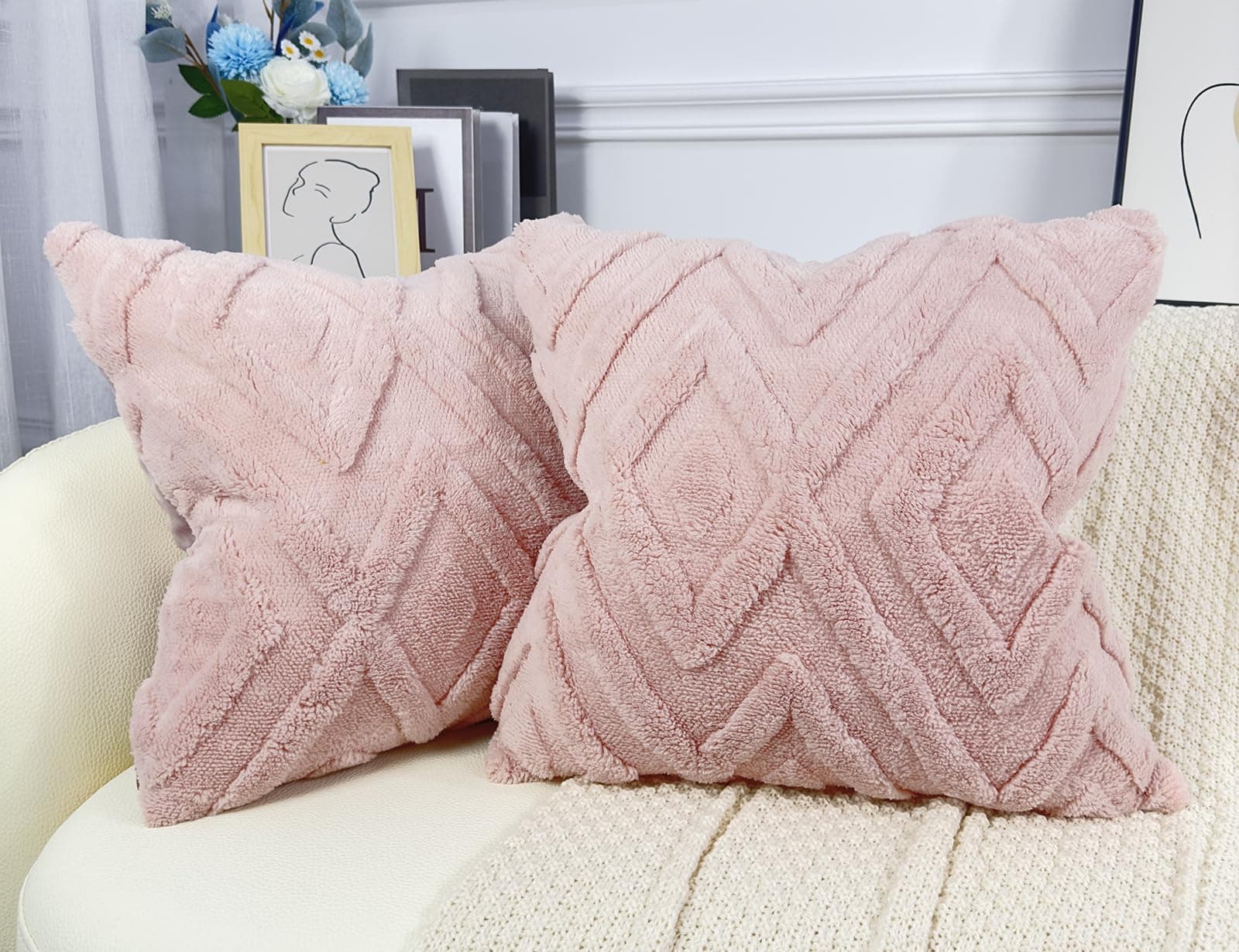 Juego de 2 Fundas para Cojines de Pelo Sintético Rosa