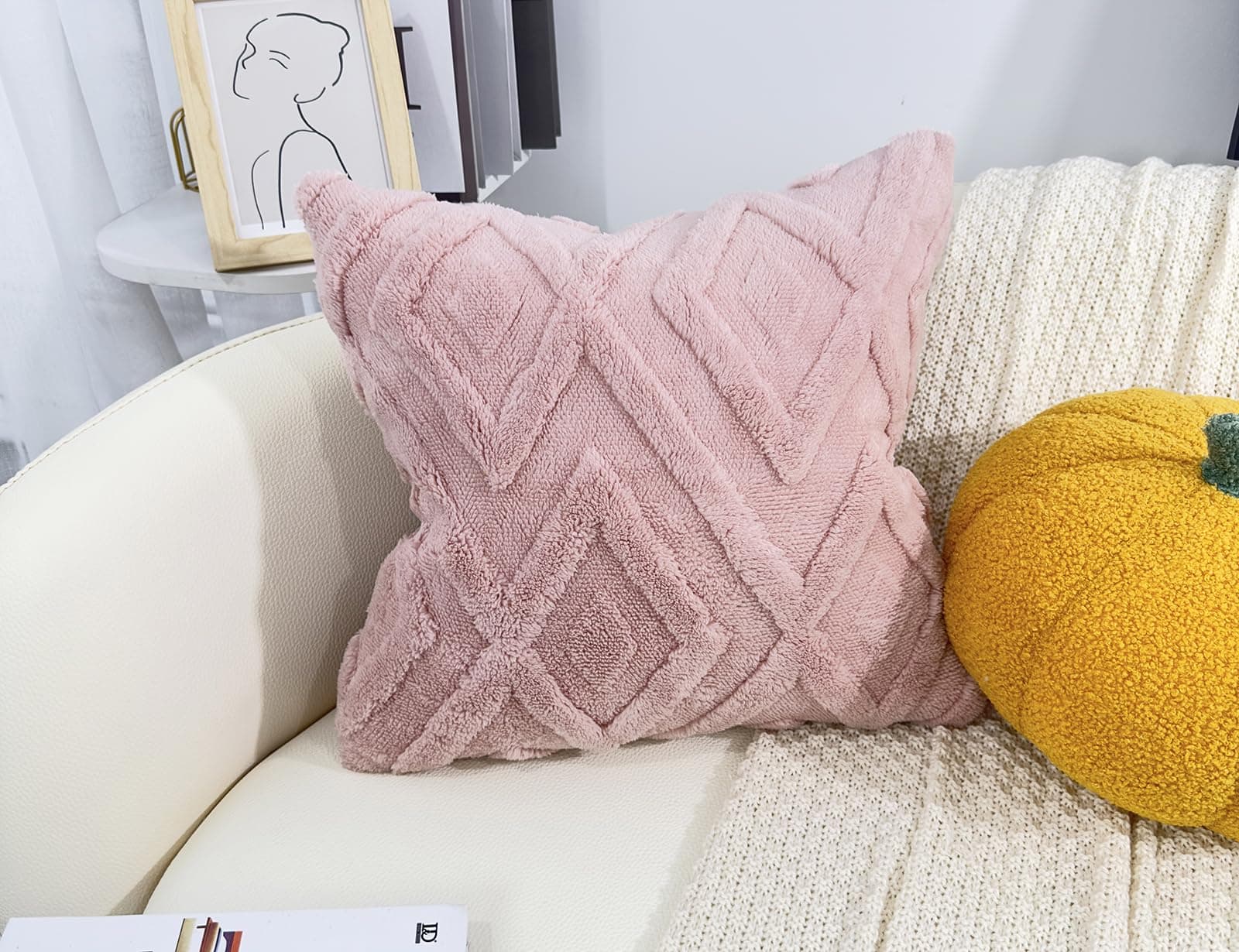 Juego de 2 Fundas para Cojines de Pelo Sintético Rosa 30×30, Estampado de Cuadros Suave Decorativo Funda de Cojín Boho para Sofá Cama Sala de Estar Granja, Acento Moderno. Material: Super acogedor fleece de borreguillo. Este tipo de lana artificial tiene una textura excelente, suave, transpirable y no suelta pelo. Decoración: El clásico estampado de cuadros le da un estilo europeo minimalista. Esta funda de cojín neutral combina bien con decoración bohemia de granja, mediados de siglo, retro y chic. TRABAJO ARTESANAL: Utilizamos cremallera invisible del mismo color que la funda de cojín, lo cual es elegante y fácil de quitar. Cada costura está reforzada para hacer que la funda de cojín sea más duradera. Consejos de cuidado: Lavar a máquina en frío por separado, programa suave solamente, no usar blanqueador, secar en secadora, no planchar y se verá como nuevo. La primera limpieza puede tener algunas fibras flotantes, lo cual es normal. AVISO: El paquete contiene 2 fundas de cojín sin relleno. TAMAÑO: 75 x 75 cm. Para hacer la mejor funda de cojín de alta calidad, tu satisfacción del 100% es nuestra máxima meta.