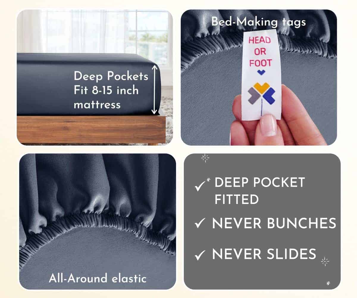 Este pack contiene 2 juegos de sábanas – Los juegos de sábanas twin incluyen 2 sábanas superiores, 2 sábanas inferiores ajustadas y 2 fundas de almohada de tamaño estándar. El elástico de alta calidad no se aflojará ni se amontonará, y los indicadores laterales de cabeza/pie hacen que hacer la cama sea muy fácil. Las sábanas ajustadas se ajustan a colchones de 8 a 15 pulgadas de profundidad. Fáciles de lavar y mantener – Puedes lavar y secar a máquina nuestro juego de sábanas twin azul en un ajuste normal, y saldrán luciendo genial durante años. Nuestras sábanas son duraderas, apenas se arrugan y no se formarán bolitas, destiñen ni encogen. Beneficios para la salud – El algodón es naturalmente transpirable y suave para tu piel. Según la National Sleep Foundation, los tejidos sintéticos como el microfibra pueden perturbar el sueño y causar problemas de salud, mientras que las sábanas de 100% algodón promueven la regulación natural de la temperatura y un mejor funcionamiento durante el día. Nuestros juegos de sábanas para camas gemelas están certificados Oekotex Standard 100, probados en busca de sustancias dañinas para proteger tu salud. Nuestro compromiso – En 2022 y 2023, donamos más de 22,000 piezas de ropa de cama a organizaciones benéficas locales en EE. UU. No usamos plástico en nuestro embalaje y nuestras sábanas se producen en nuestra fábrica de propiedad y operación familiar en India. Cada pieza se inspecciona para garantizar la calidad, y prometemos reemplazar cualquier producto defectuoso sin costo alguno para ti. Compra con confianza con nuestra política de devolución de 30 días, incluso si has lavado o usado nuestro producto.