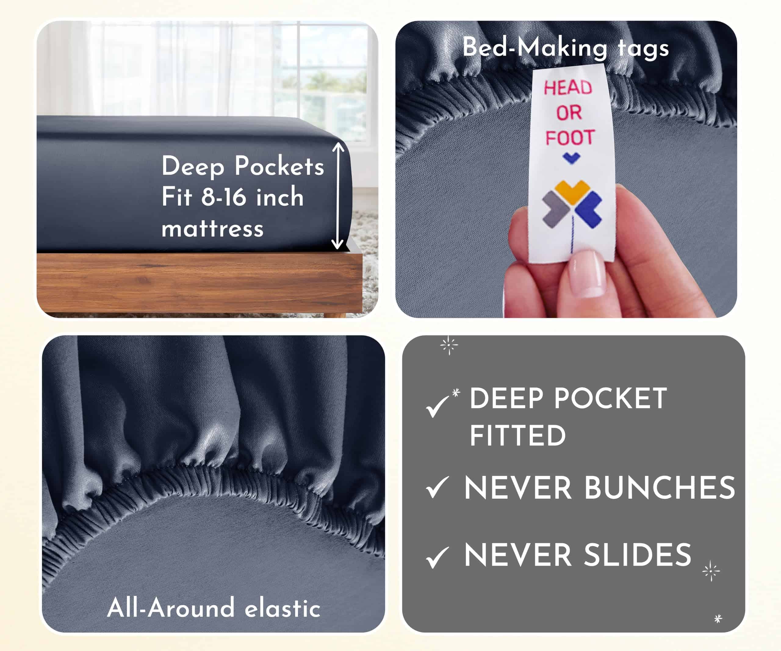 2. ESTE PAQUETE CONTIENE 2 JUEGOS DE SÁBANAS – El juego de sábanas tamaño queen de 2 paquetes incluye 2 sábanas superiores, 2 sábanas inferiores ajustadas y 4 fundas de almohada de tamaño estándar/queen. El elástico de alta calidad no se afloja ni se amontona, y los indicadores laterales de la cabeza/pie facilitan hacer la cama. Las sábanas ajustadas se adaptan a colchones de 8 pulgadas a 16 pulgadas de profundidad.