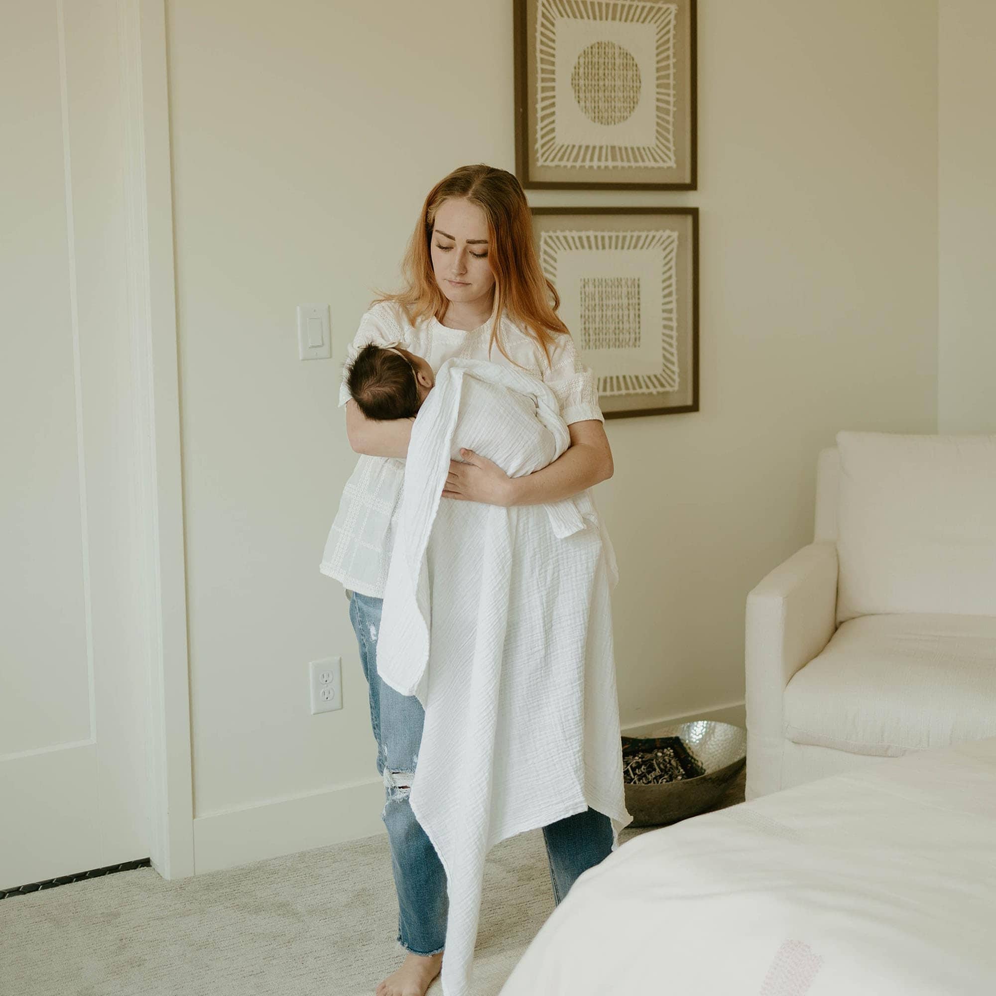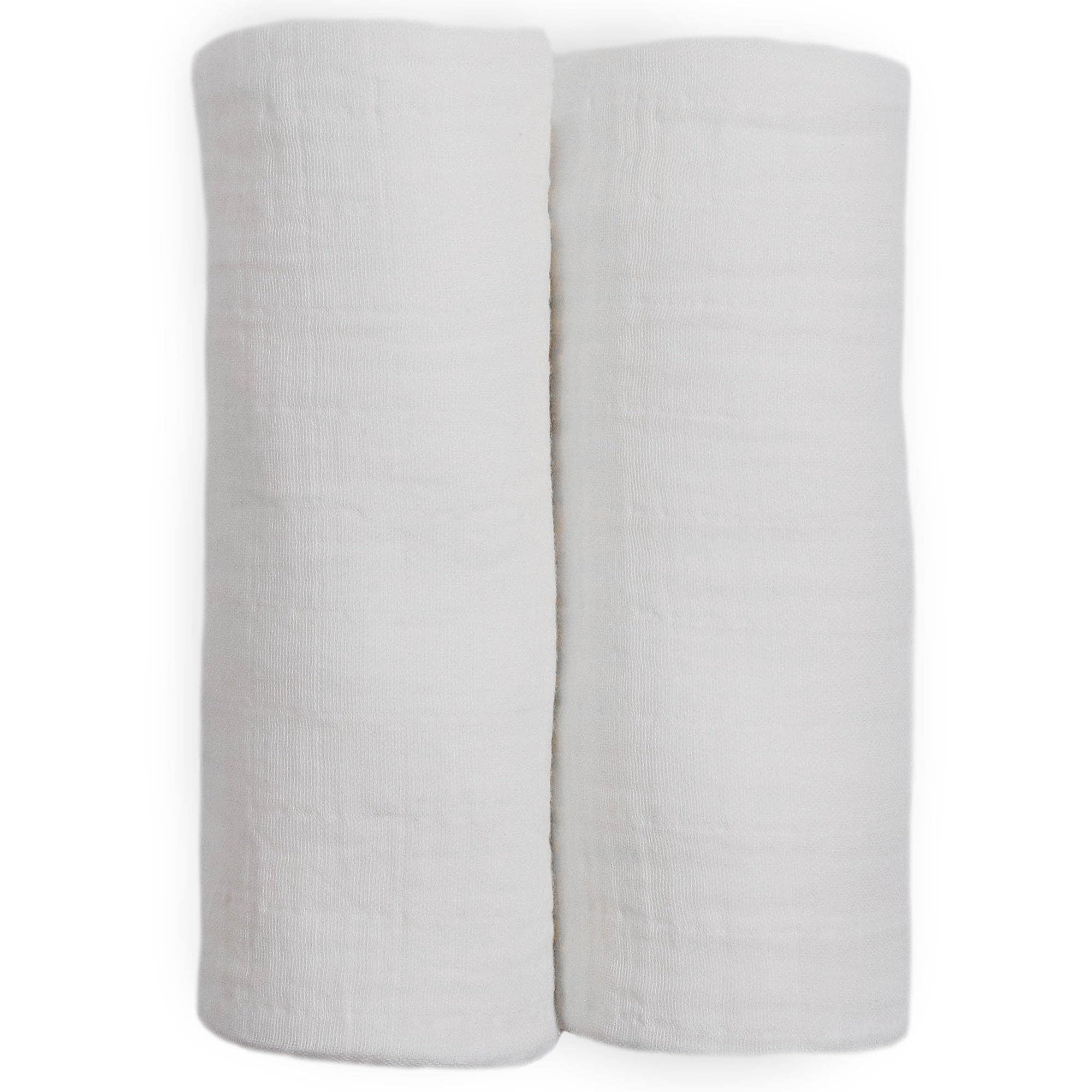 Juego de 2 mantas de muselina para envolver a Little Unicorn 100% de algodón orgánico natural certificado. Este conjunto regalable de 2 mantas en color blanco está hecho de muselina premium, lo que lo hace suave para la piel delicada del bebé. La muselina es ligera y transpirable, ayudando a prevenir que el bebé se sobrecaliente. Cada manta tiene múltiples usos, como envolver al bebé, usarla para amamantar, como paño de eructar y más. ¡Perfecto para regalar o para usarlo con tu propio bebé! Añade este versátil y práctico juego de mantas de muselina a tu colección de artículos esenciales para bebé.