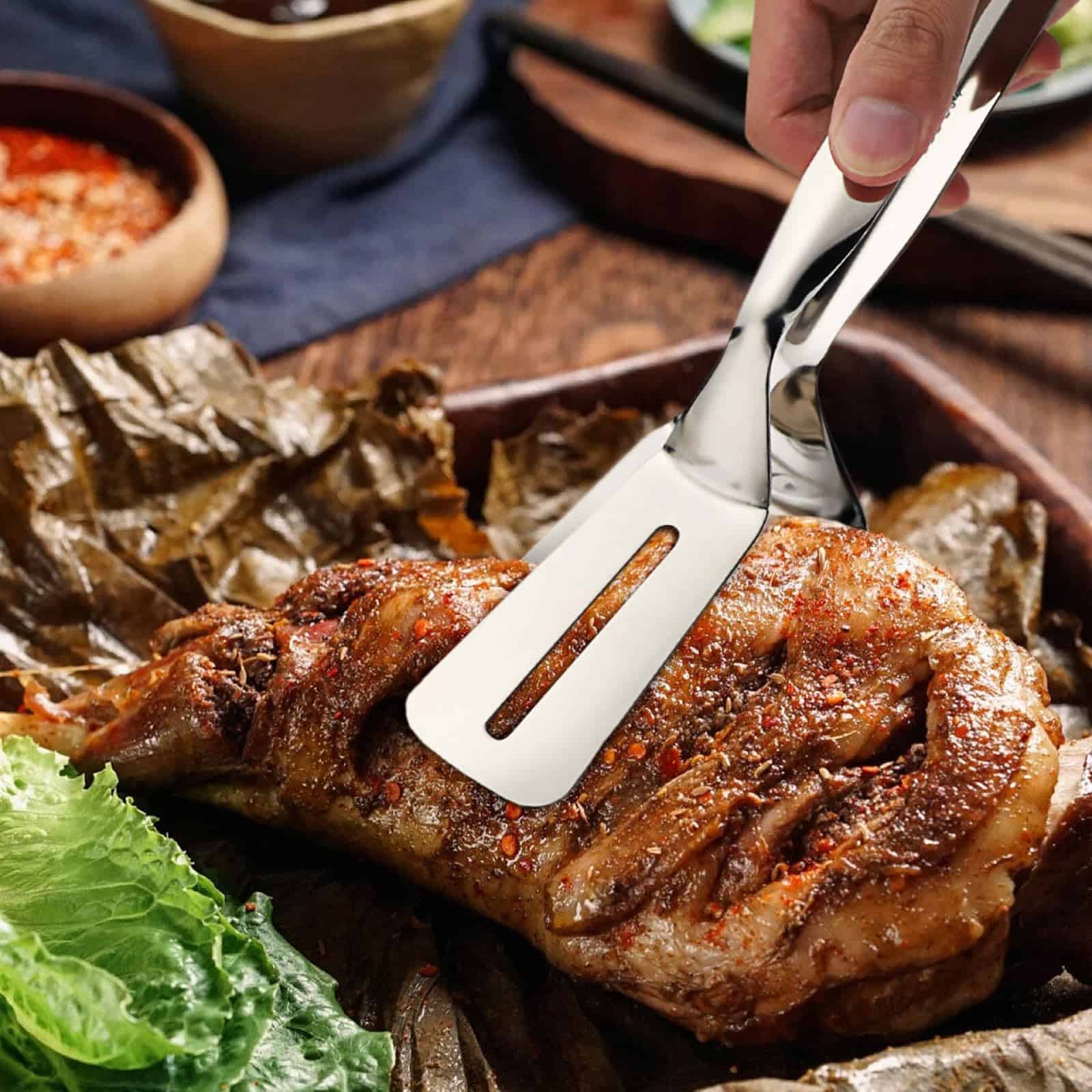 + Ideal para voltear bistecs, hamburguesas, salmón, pescado u otras piezas de carne