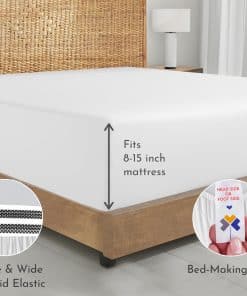 1. PACK INCLUYE 2 SÁBANAS AJUSTABLES: Hechas de 100% algodón orgánico, nuestras 2 sábanas cal king con bolsillos profundos son suaves y frescas. El duradero y transpirable tejido de percal proporciona una sensación fresca haciéndola ideal para los que duermen calurosos. El paquete contiene 2 x sábanas ajustables California King – 72″ W x 84″ L + 15″ bolsillos profundos, totalmente elásticas. 2. BOLSILLO PROFUNDO PARA UN AJUSTE PERFECTO: Las sábanas blancas ajustables cal king están equipadas con un elástico único antideslizante para que se ajusten perfectamente al colchón de 8 a 15 pulgadas de profundidad. La sábana ajustable se sostiene toda la noche sin deslizarse. Las etiquetas inteligentes de «lado de la cabeza y pie» garantizan una experiencia de hacer la cama sin problemas. 3. SUAVE CON TU PIEL: Las sábanas ajustables de colchón de algodón orgánico certificado por GOTS están cuidadosamente diseñadas para sentirse muy suaves contra tu piel. 4. SE MANTIENEN EXCEPCIONALMENTE CON EL TIEMPO: Nuestras sábanas hechas con tejido de percal se destacan por su durabilidad excepcional. El tejido de percal clásico garantiza un confort duradero y sin bolitas. Es lavable a máquina, mantiene el color y se vuelve más suave con el tiempo. 5. HECHO CON AMOR: Haz una elección segura y saludable para tu familia con ropa de cama ecológica para tu hogar. Nuestras sábanas cuentan con un increíble servicio al cliente para una garantía de satisfacción del 100%. Si por alguna razón no te encanta la sensación de nuestras sábanas orgánicas, puedes devolverlas dentro de los 30 días.