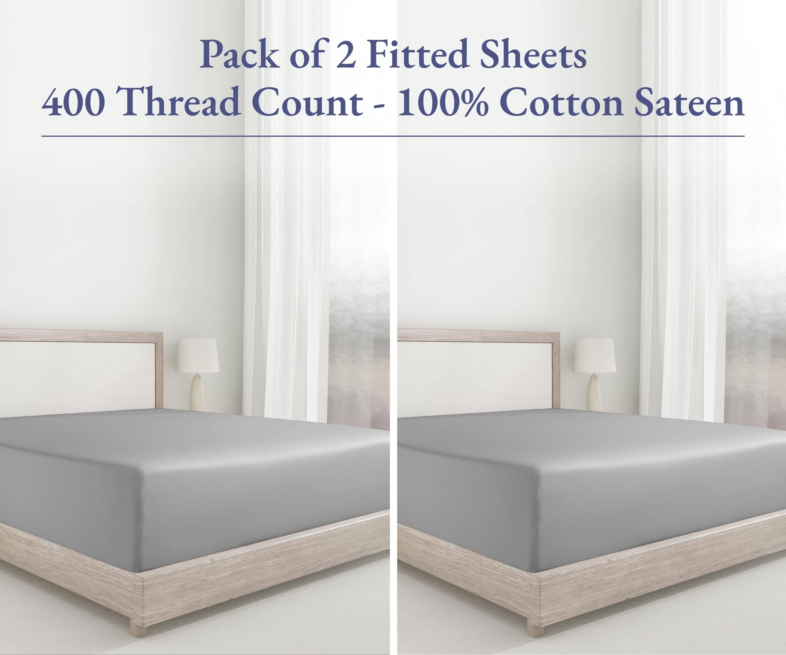 Juego de 2 Sábanas Ajustables Queen, 400 Hilos de Algodón
