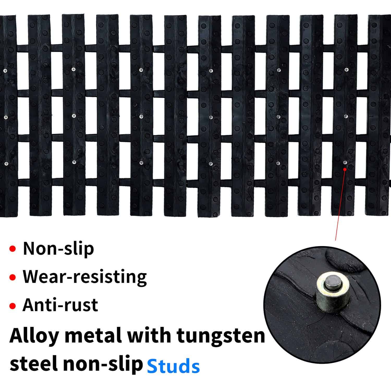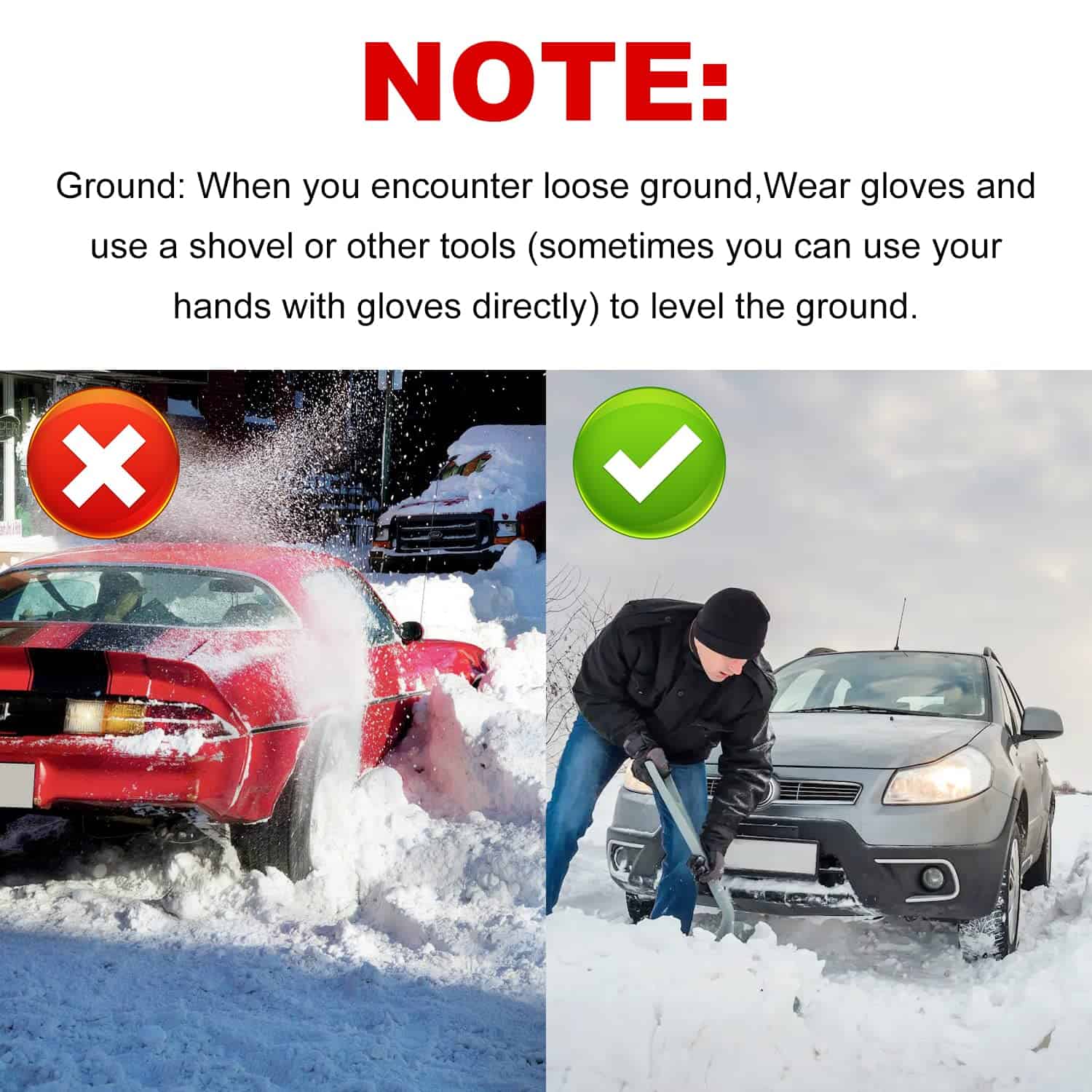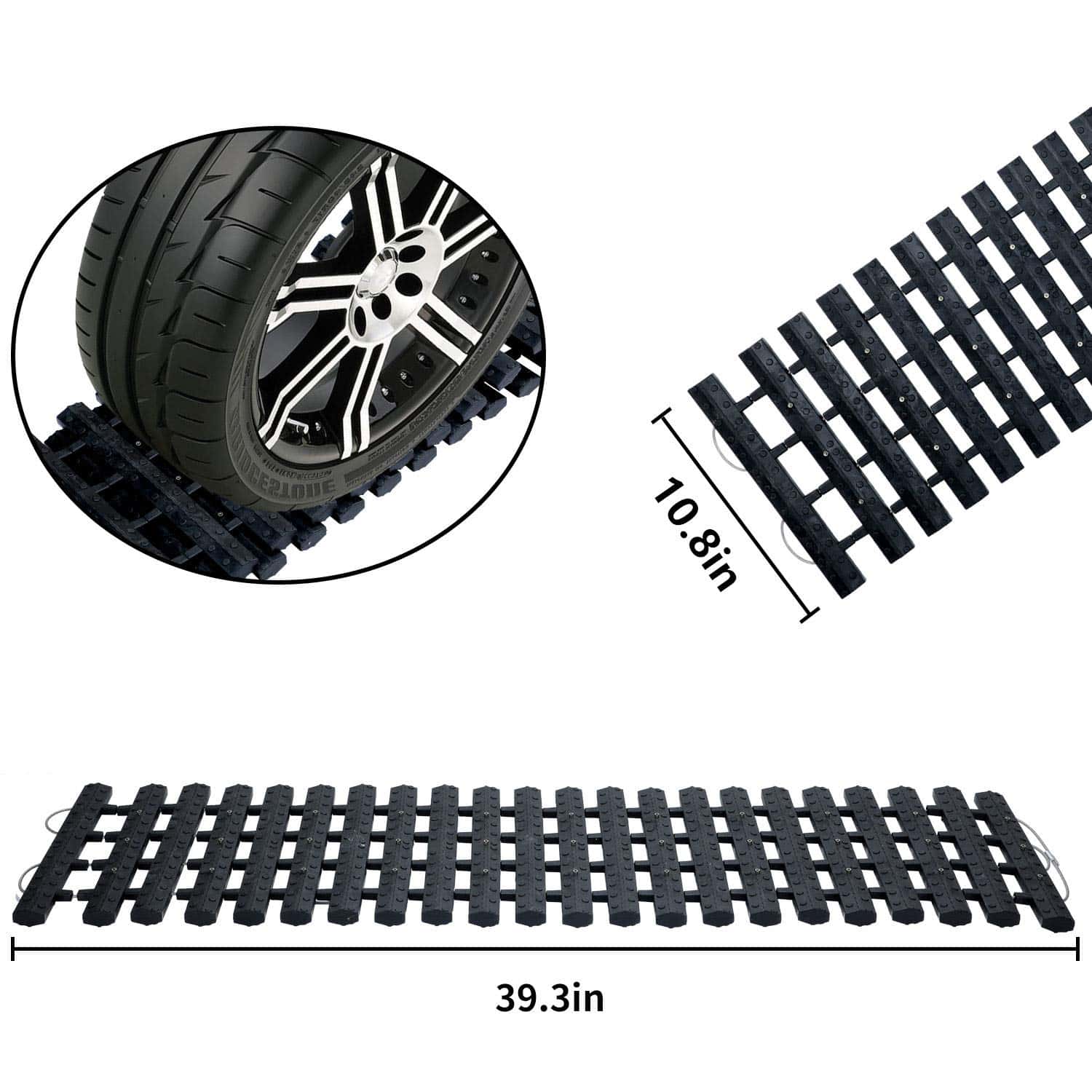 Estas tablas de tracción están hechas de tungsteno de alta calidad en el lado orientado al suelo, lo que las hace altamente resistentes al desgaste y duraderas. Vienen con una bolsa práctica y un guante de plástico para mantener tus manos limpias y se pueden almacenar fácilmente en diferentes tipos de vehículos.