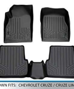 Este juego de 2 tapetes para Chevrolet Cruze está diseñado específicamente para los modelos 2011-2015 Cruze y 2016 Cruze Limited. Ofrecen protección contra todo clima y son resistentes a las manchas, protegiendo su piso de vehículo de la nieve, lodo, arena y agua salada. El labio elevado y el diseño personalizado garantizan un ajuste perfecto que protege la alfombra de su vehículo de cualquier desorden o derrame. Los tapetes son fáciles de limpiar, simplemente enjuáguelos o límpielos con un paño húmedo. Su diseño texturizado y antideslizante mejora la apariencia interior de su automóvil. Hechos con un material 100% reciclable y sin olor, son respetuosos con el medio ambiente.