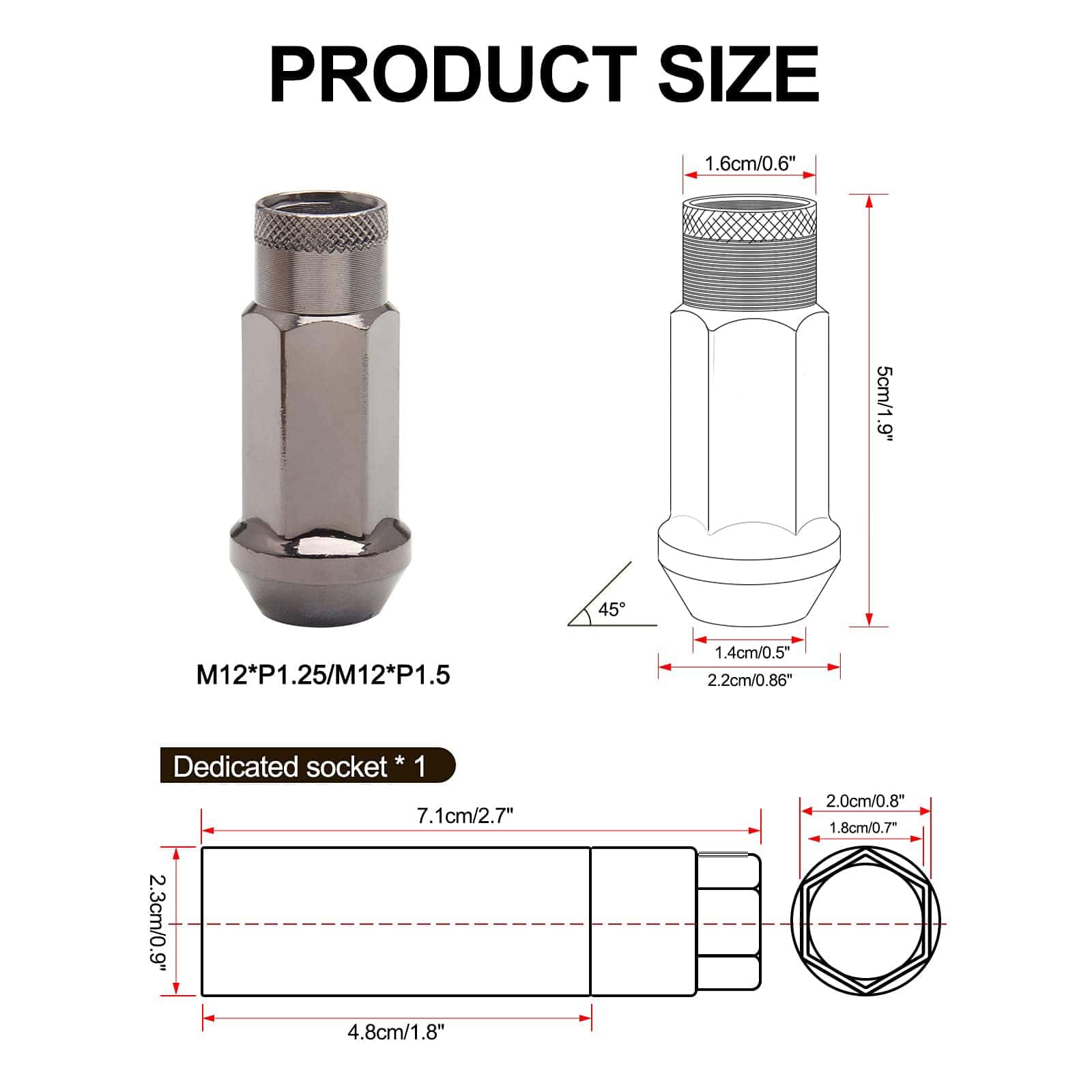 Juego de 20 Tuercas de Rueda Extendidas de Acero Forjado en