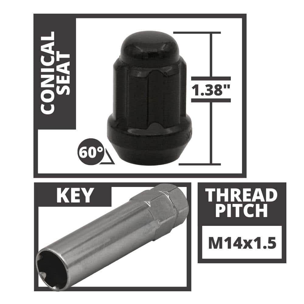 Juego de 24 Tuercas para Llantas Acorn de Estriado M14x1.5