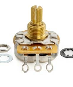 2. Potenciómetros divididos finos de 24 estrias con eje imperial para perillas de guitarra hechas en Estados Unidos, diámetro del eje dividido: 6mm (15/64 pulgadas), diámetro del hilo: 9.5mm (3/8 pulgadas), altura del hilo: 6.5mm (1/4 pulgada).