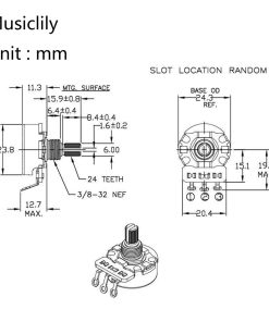 4. Ofrece bajo ruido, construcción robusta, lubricante antiestático propietario, sensación suave, reducción de oscilación del eje, cubierta soldable con estaño. El valor de 250K generalmente se utiliza para pastillas de bobina simple, libera algunas de las altas frecuencias a tierra, proporciona un tono más cálido que un 500K.