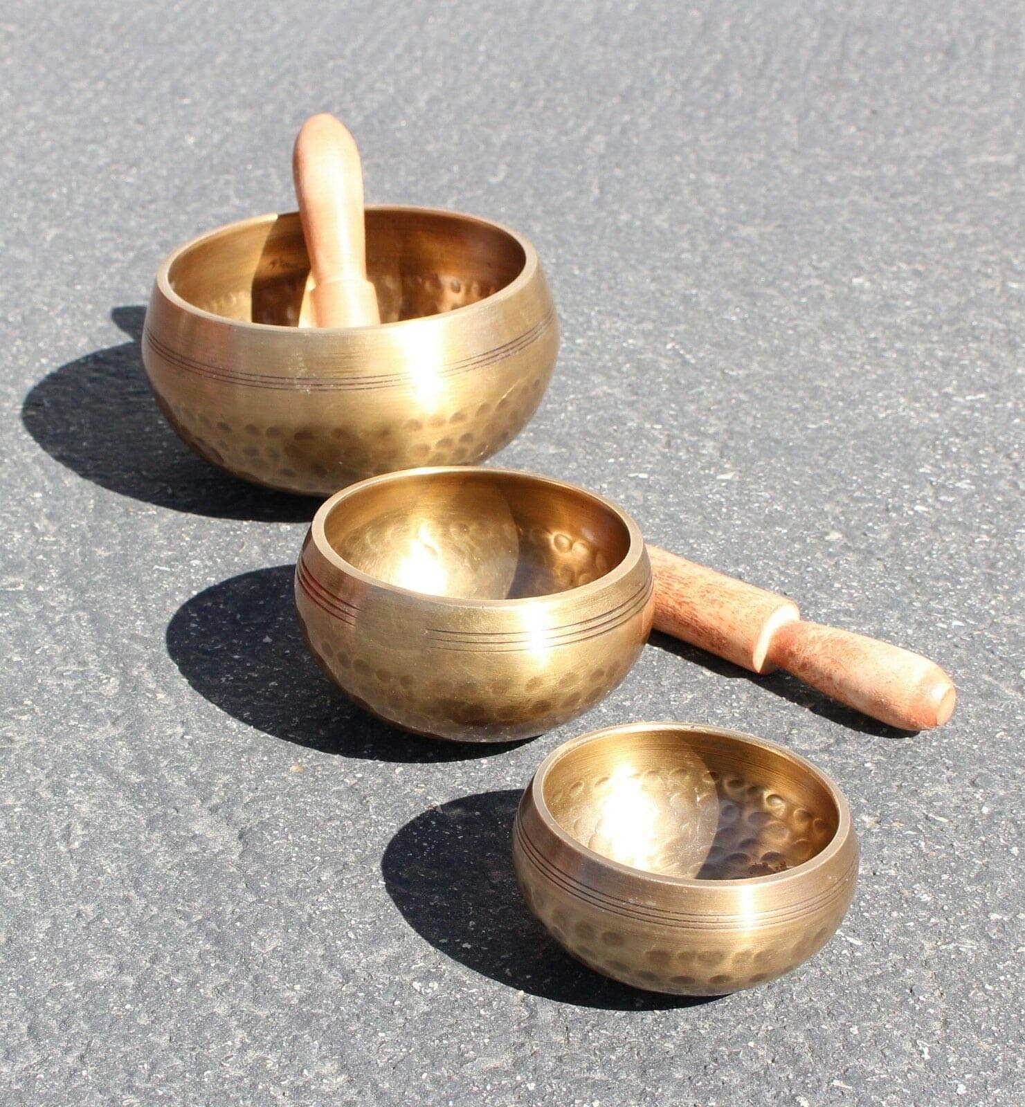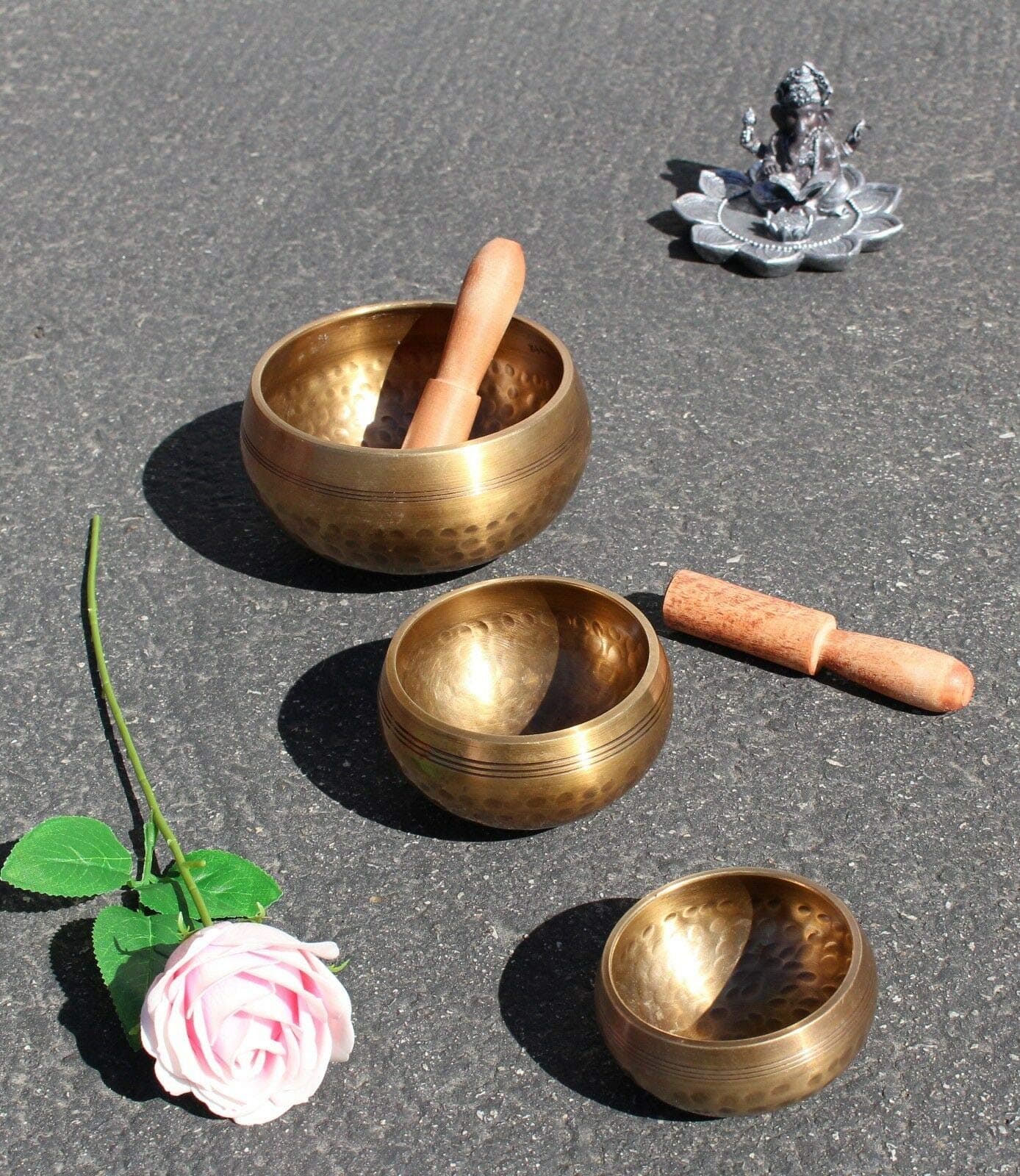 Juego de 3 Cuencos Tibetanos de Pie para Meditación de