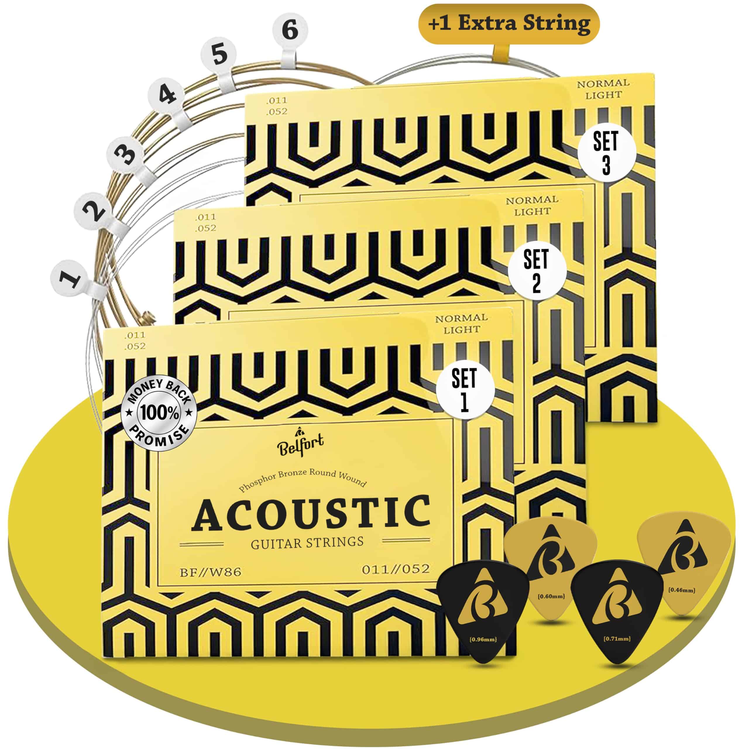 Juego de 3 Cuerdas de Guitarra Acústica BELFORT 6 Cuerdas –