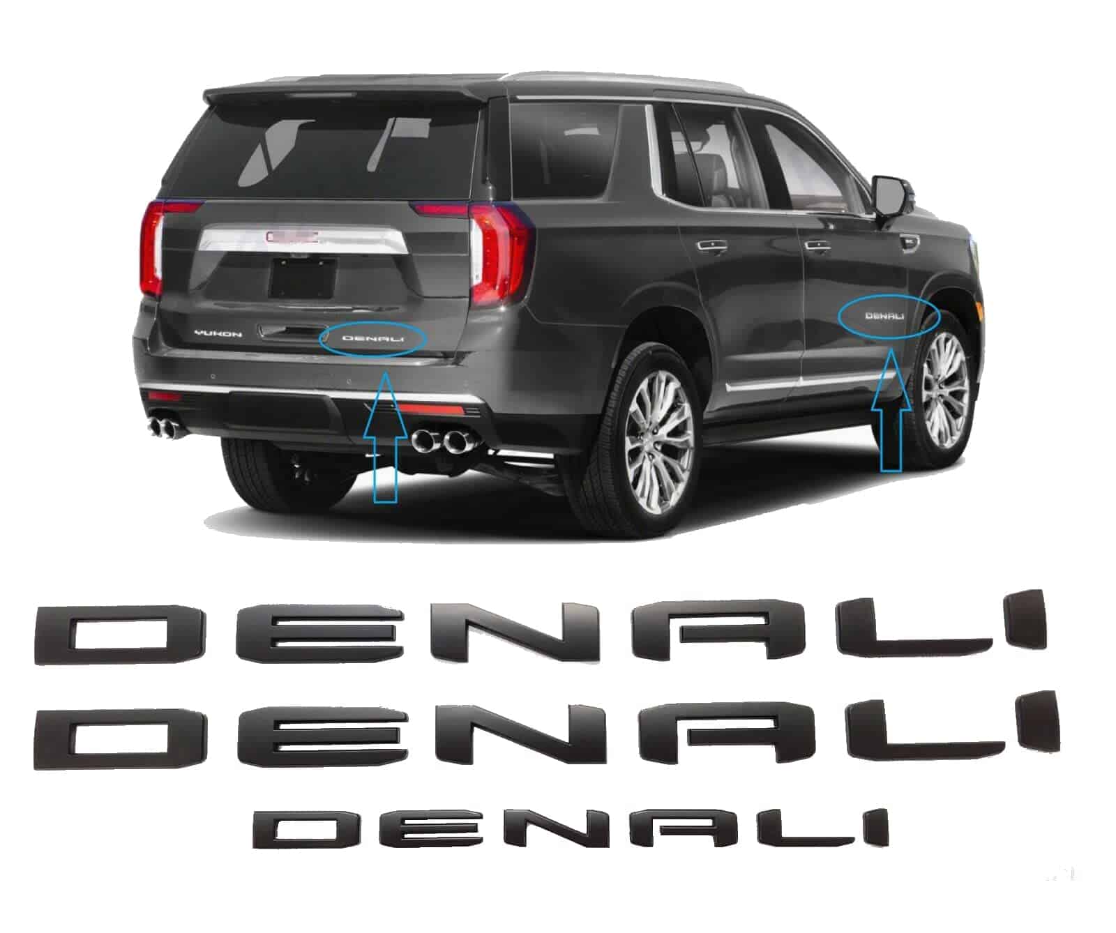 Juego de 3 Emblemas Letras Denali para Puerta Trasera,