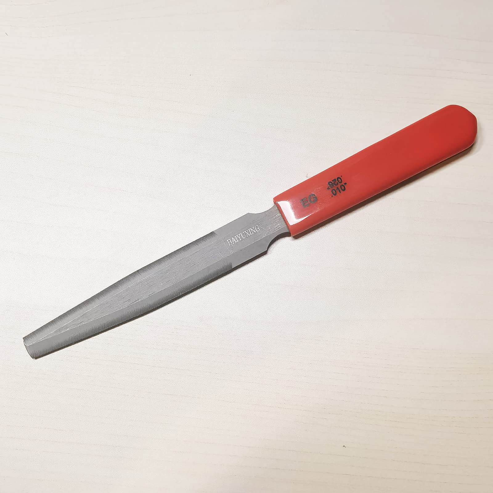 Excelente juego de limas en forma de V para ranurar tuercas en guitarras eléctricas, acústicas o de bajo. 3 limas cónicas de doble filo para cortar ranuras de cuerdas en la tuerca, imprescindibles para tiendas que construyen, reparan o cambian tuercas. Se incluye una bolsa de transporte de PVC para mantener los bordes de las limas sin dañarse entre sí. Cada juego contiene 3 limas de doble lado en su interior. Juego de 3 limas para guitarra eléctrica: 3 limas de doble lado .010″/.013″/.017″/.026″/.036″/.046″, Juego de 3 limas para guitarra acústica: 3 limas de doble lado .016″/.026″/.036″/.042″/.050″/.055, Juego de 3 limas para guitarra de bajo: 3 limas de doble lado .045″/.065″/.075″/.085″/.105″/.130. Ofrecemos productos de alta calidad y el mejor servicio. Si tienes alguna pregunta, puedes contactarnos en cualquier momento, y la resolveremos lo antes posible, para que puedas comprar con confianza y felicidad.