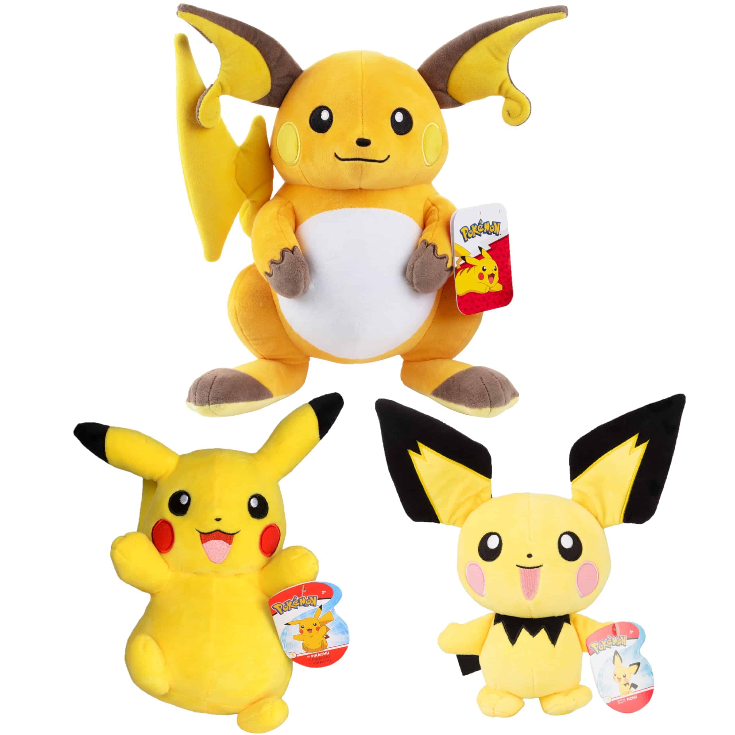 Juego de 3 peluches de 8″ Pichu, 8″ Pikachu y 12″ Raichu
