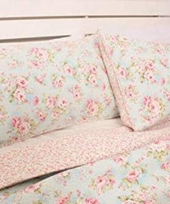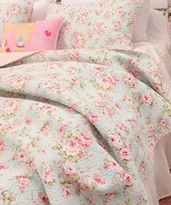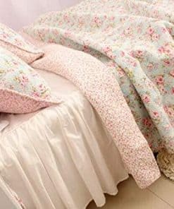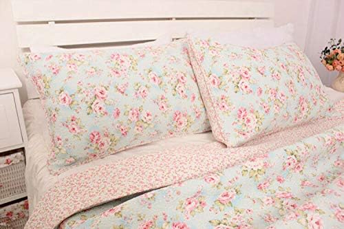 Este juego de edredón cubrecama floral de estilo country cottage tiene un patrón de patchwork hermoso y delicado.