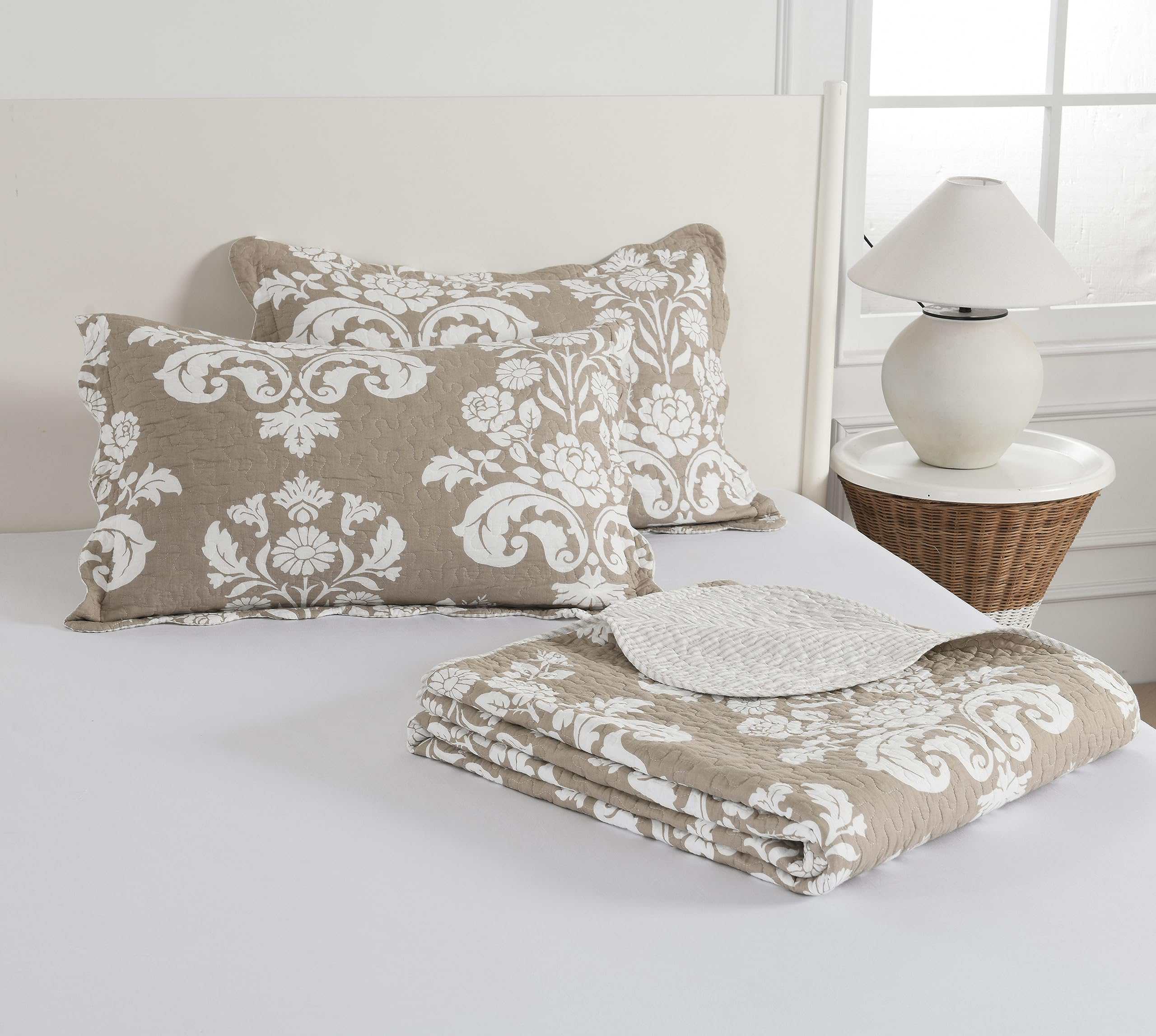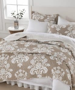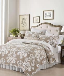 El juego de edredones Lorriard de 3 piezas para cama king size es la solución perfecta para una cómoda y elegante ropa de cama. Fabricado con un material de algodón 100% natural, este edredón es suave al tacto y se vuelve aún más suave con cada lavado. El diseño floral en tonos beige le dará un toque de frescura y elegancia a tu dormitorio, mientras que la parte posterior rayada le brindará la opción de cambiar de estilo en cualquier momento. Este edredón ligero es ideal para todas las estaciones, ya que te mantendrá fresco en los meses calurosos cuando se usa en un cuarto con aire acondicionado. Además, también puedes utilizarlo como colcha durante el invierno para tener una capa extra de calidez. El juego incluye un edredón de 98″ x 106″ y dos fundas de almohada de 20″ x 36″ para una coordinación perfecta. Cuidar de este edredón es sencillo, solo tienes que lavarlo a máquina y secarlo a baja temperatura. ¡Renueva tu dormitorio con este elegante juego de ropa de cama ahora!