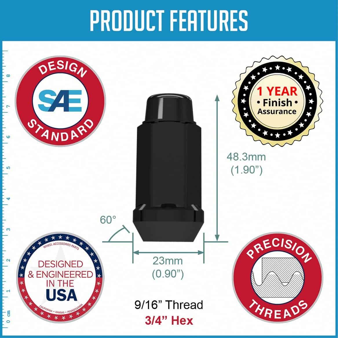 Juego de 32 Pcs Tuercas de Rueda Acorn de 9/16″-18 Rosca
