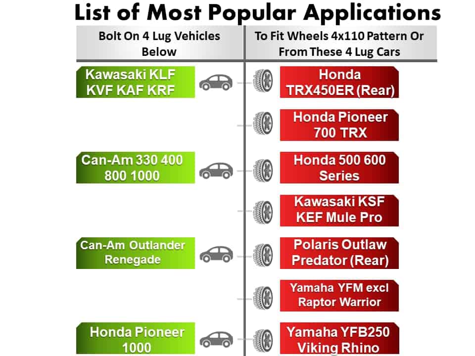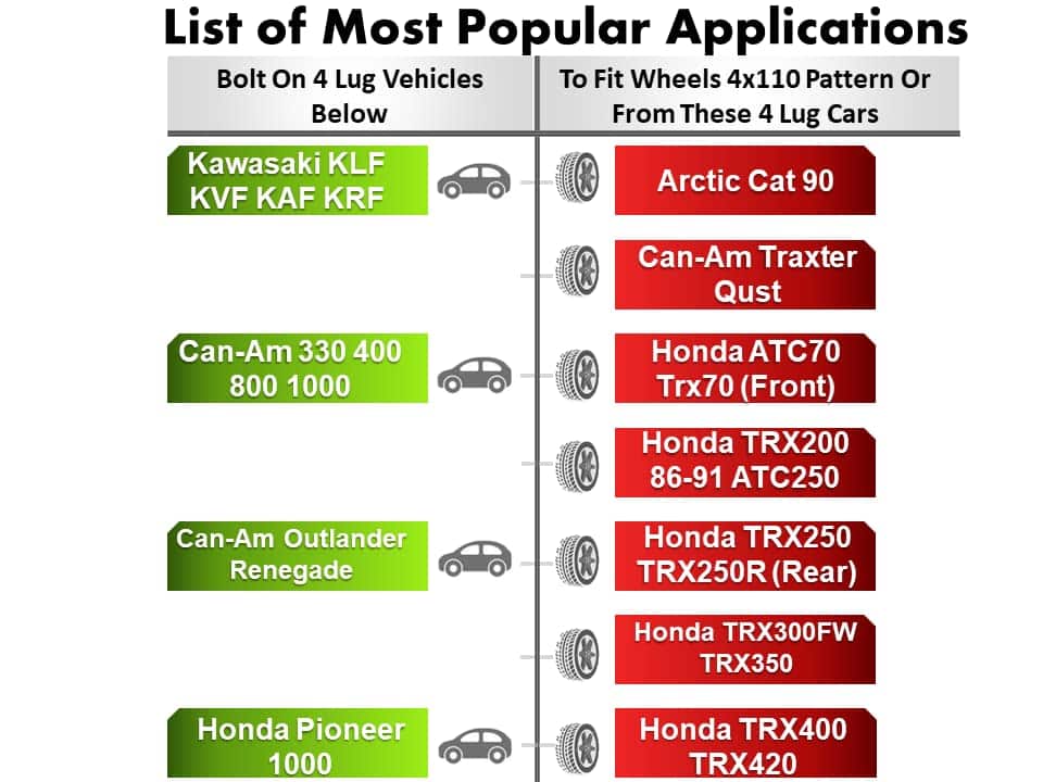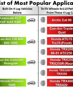 El par de adaptadores de rueda para ATV se usa en cubos de patrón de pernos de 137 mm de 4 pernos para adaptarse a ruedas de patrón de pernos de 110 mm de 4 pernos. Espaciarán tus ruedas 1.5 pulgadas para ayudarte a obtener suficiente espacio para neumáticos y llantas más anchos. Mecanizados CNC con mano de obra de precisión utilizando aluminio de calidad aeronáutica billet 6061 T6, presentan una alta capacidad de carga y resistencia a la corrosión. Los pernos de alta calidad vienen preinstalados y se incluyen tuercas de perno de extremo abierto de tamaño de rosca 10×1.25. Se venden como un juego para 4 ruedas. Ordena 1 juego para todas las 4 ruedas. Especificaciones del Adaptador: Patrón de Pernos del Vehículo: 4×137 mm Patrón de Pernos de la Rueda: 4×110 mm Tamaño de Rosca de los Pernos: M10x1.25 Tamaño del Orificio del Cubo: 119 mm Grosor: 1.5 pulgadas (38 mm) Notas Técnicas: Si los pernos de la maza sobresalen fuera del adaptador y evitan que las ruedas se coloquen niveladas, es necesario acortar los pernos de fábrica.