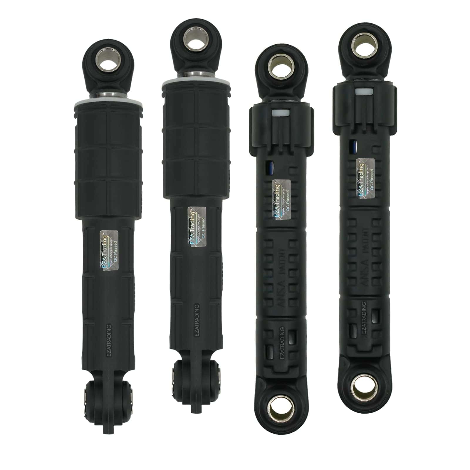 Exacta para lavadoras Samsung. Número de parte: DC66-00470C para el frente y DC66-00531B para la parte trasera. Incluye 4 amortiguadores. Compatible con modelos como WF36J4000AW/A2-00, WF365BTBGWR/A2-01, WF231ANW/XAA-01. Reparación de problemas relacionados con vibraciones y ruidos. Garantía de reemplazo de 1 año con EZA Trading Assurance.