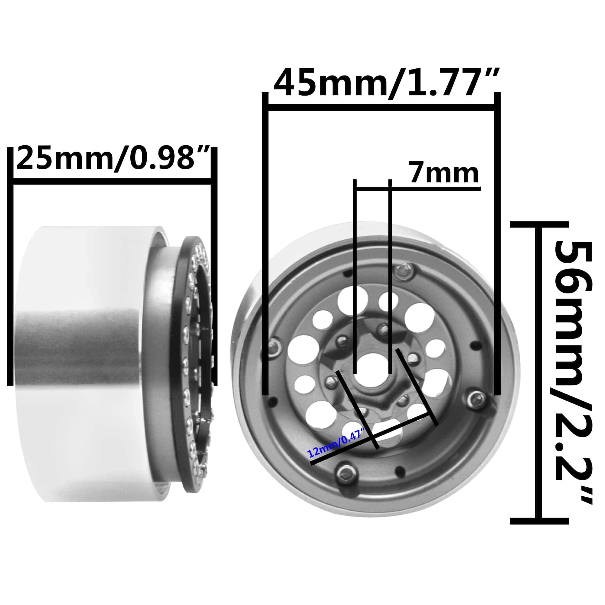 Los aros de rueda de 1.9 pulgadas están hechos de material de metal, mecanizado CNC para una alta precisión, fuertes y robustos.