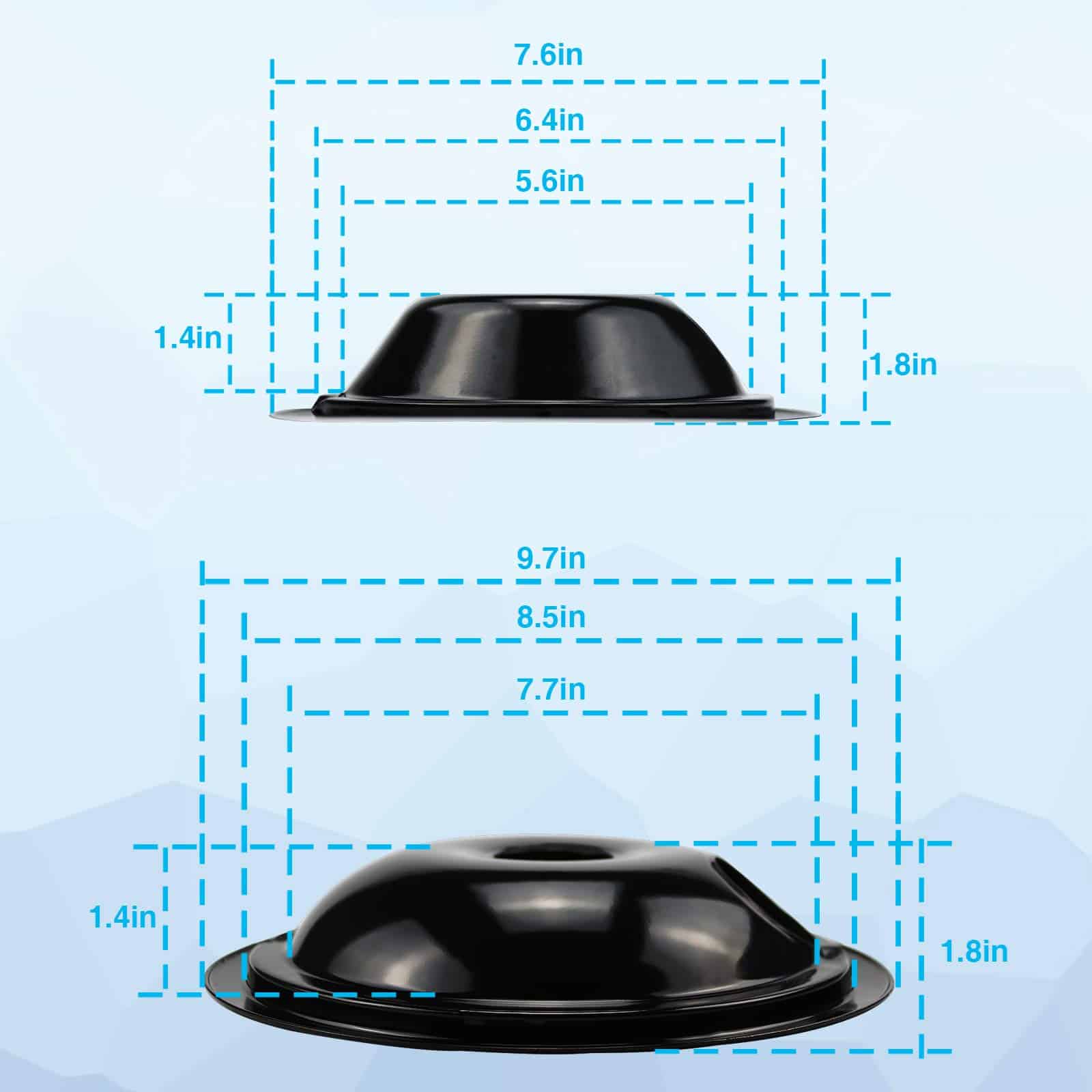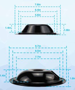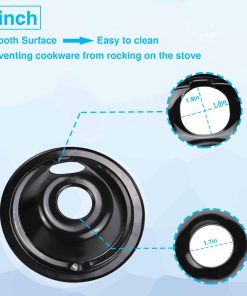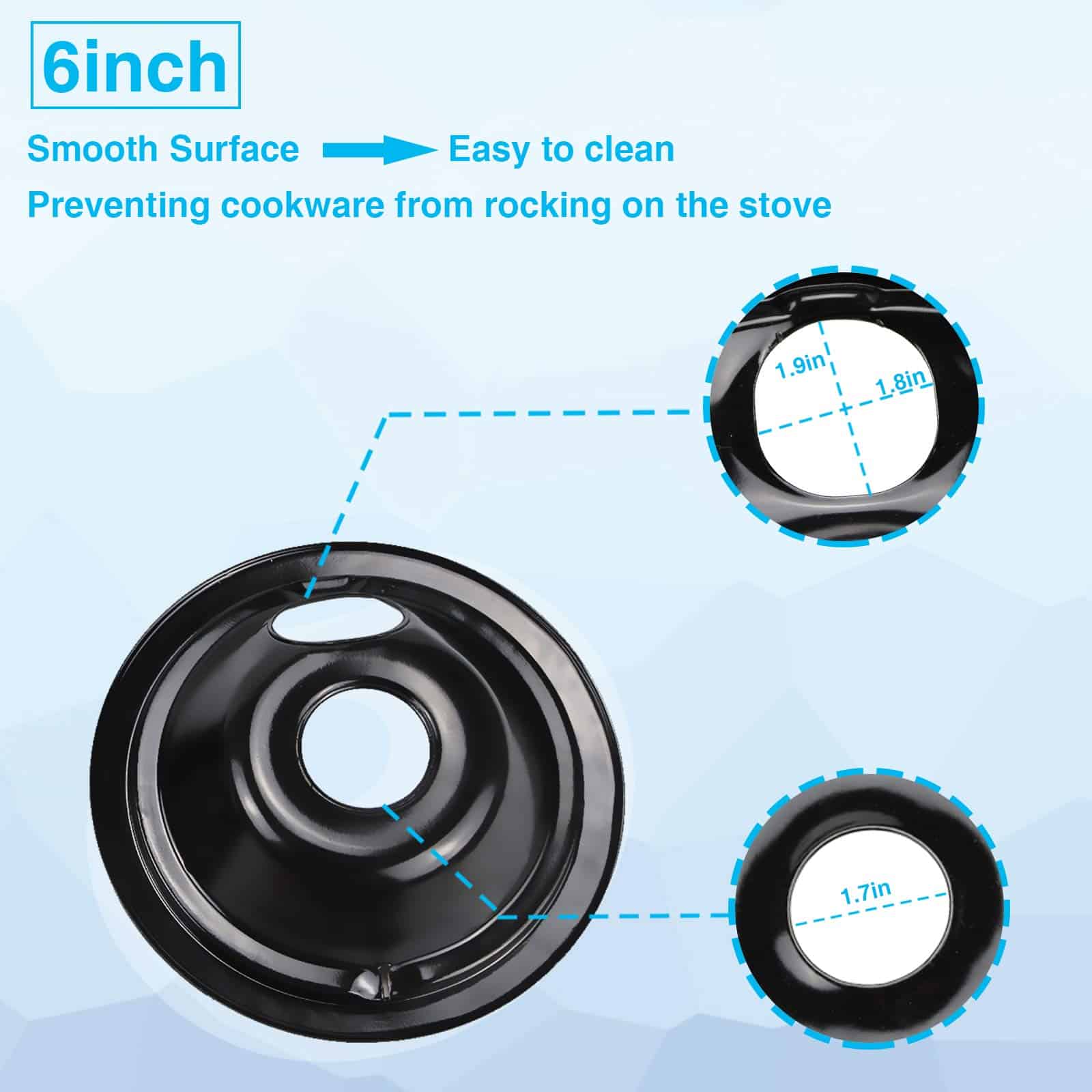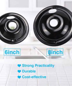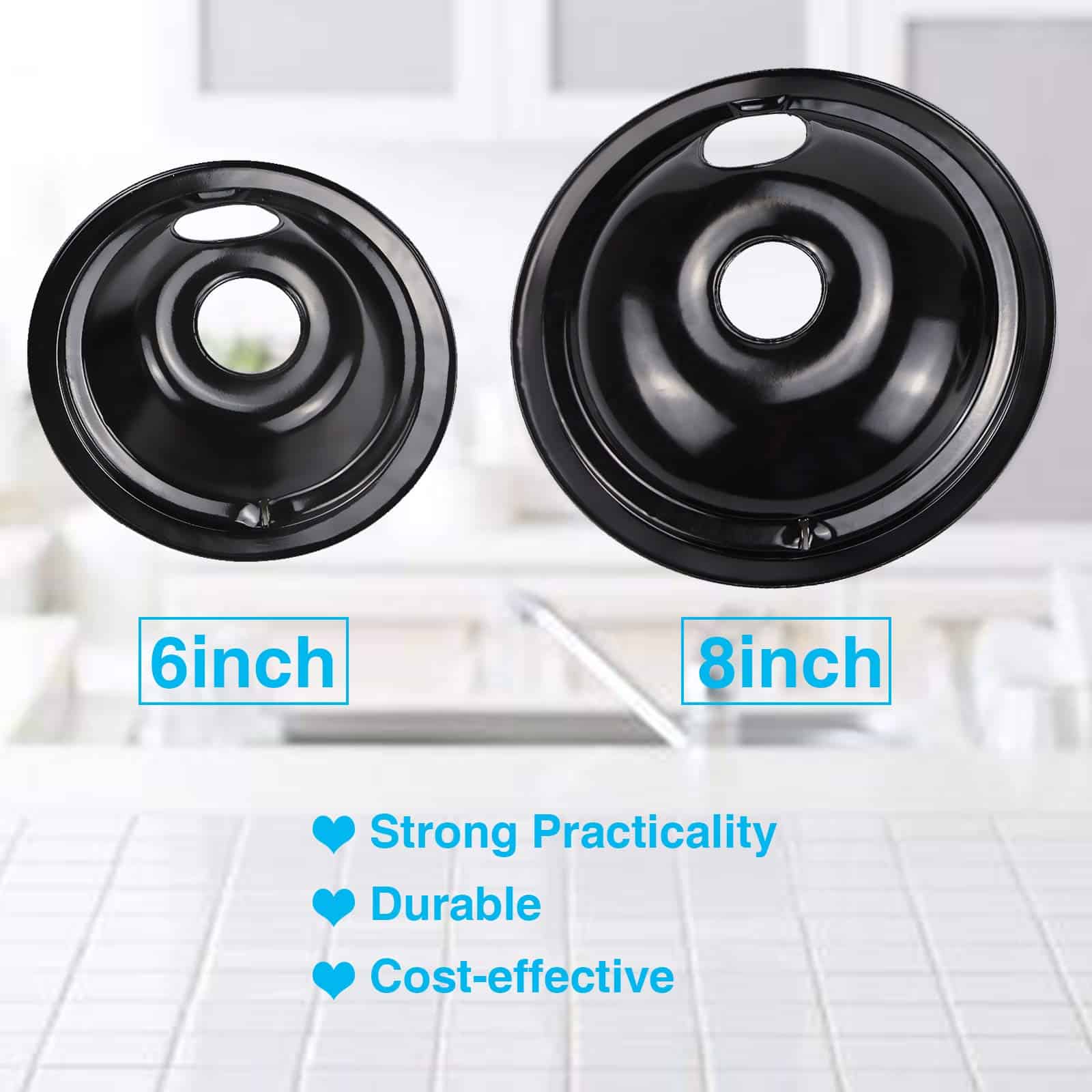 El juego de 4 piezas de Bandejas de Goteo de 6 pulgadas y 8 pulgadas de APPLIANCEMATES incluye 2 WB31M20 de 6 pulgadas y 2 WB31M19 de 8 pulgadas; Las bandejas de goteo de 6 pulgadas tienen un diámetro de 7.5 pulgadas (aproximadamente 19.2 centímetros); El de 8 pulgadas tiene un diámetro de 9.75 pulgadas. Las bandejas WB31M19 y WB31M20 capturan derrames de utensilios de cocina en los quemadores de superficie. Hechas de material de alta calidad y probadas por el fabricante, estas bandejas de porcelana negra mejoran, mantienen y aseguran la seguridad de su estufa. Compatible con modelos de GE, Ken-more y Hot-point