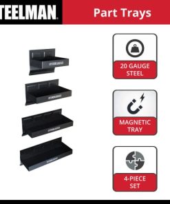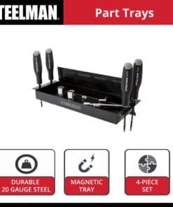 El Juego de 4 Bandejas Magnéticas de Almacenamiento de Herramientas/Partes sin daño de STEELMAN 41811 es la máxima en versatilidad. Este conjunto incluye cuatro bandejas que se adhieren convenientemente a cualquier superficie ferromagnética gracias a los imanes duraderos adheridos en la parte posterior de cada bandeja. Hechas de acero duradero calibre 20, cada bandeja cuenta con un compartimento abierto grande de 1.25 pulgadas de alto y 5 pulgadas de profundidad, ideal para almacenar herramientas pequeñas y otros elementos. Un recubrimiento de goma protectora cubre los imanes montados en la parte posterior y los puntos de contacto para evitar dañar lo que sea que la bandeja esté sujeta, lo que hace que estas bandejas sean una excelente adición a cualquier hogar, garaje/taller automotriz o salón de clases. Este conjunto incluye una bandeja de 12 pulgadas que puede soportar hasta 2.6 libras, una bandeja de 10 pulgadas que soporta hasta 2.2 libras, una bandeja de 8 pulgadas que soporta hasta 1.7 libras y una bandeja de 6 pulgadas que soporta hasta 1.3 libras.