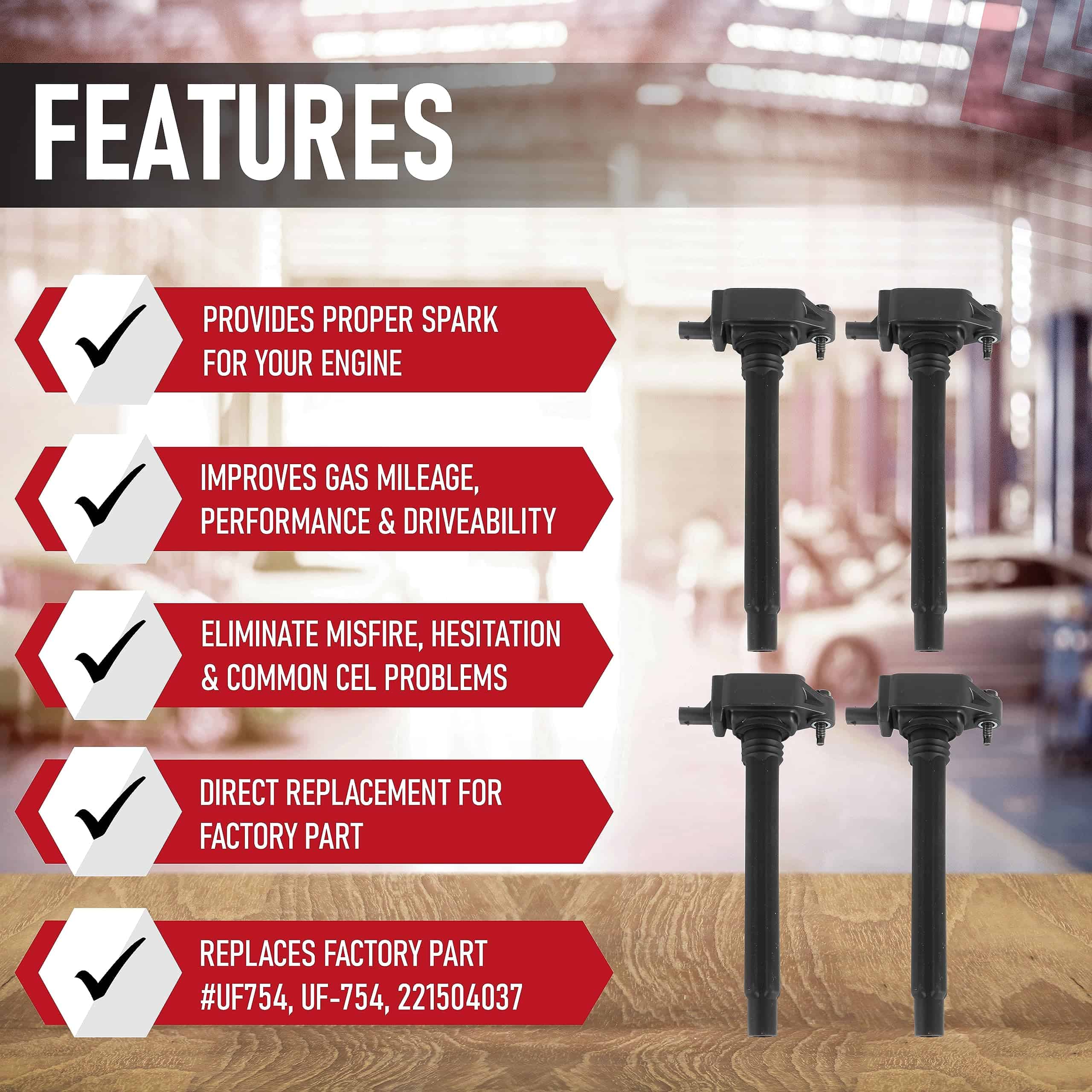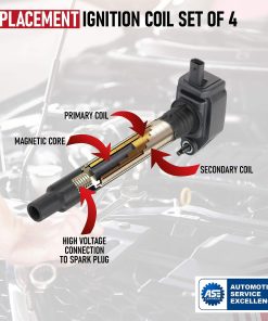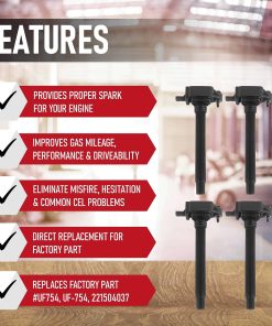 1. Juego de 4 bobinas de encendido de repuesto – Las bobinas de encendido o el enchufe de la bobina de encendido proporcionan chispa para su motor. Con el tiempo, las bobinas de encendido de fábrica pueden fallar, lo que resulta en un bajo rendimiento de combustible, vacilaciones y una luz de revisión del motor (CEL).