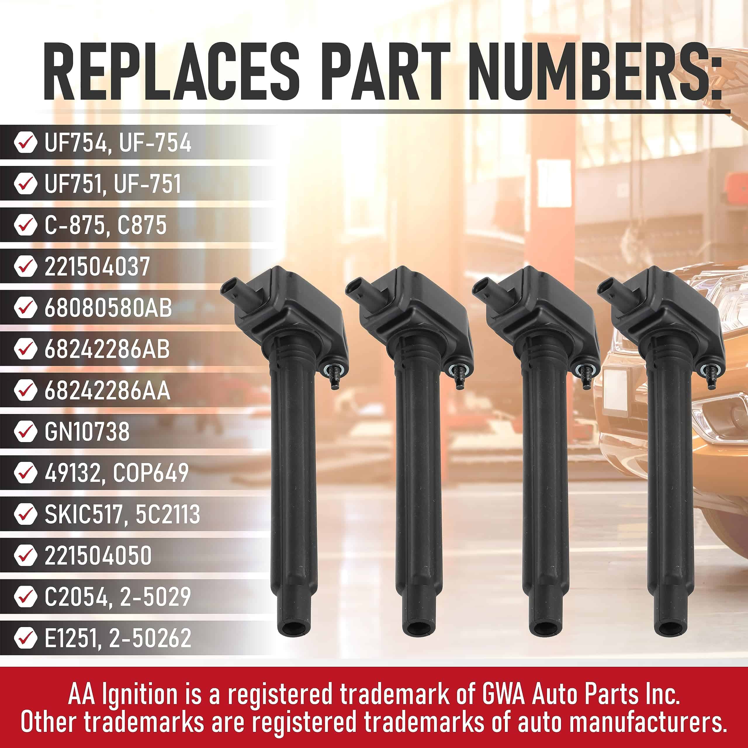 5. Garantía de 2 años o 24,000 millas – Este juego de 4 bobinas de encendido viene completo con una garantía de 2 años o 24,000 millas. Si la bobina falla alguna vez en su vehículo 200, Dart, 500X, Cherokee, Compass, Renegade o ProMaster City dentro del período de garantía, simplemente contáctenos para un reemplazo. Ahorre tiempo y dinero aprovechando esta garantía. Consulte nuestro sitio web para conocer todos los detalles.