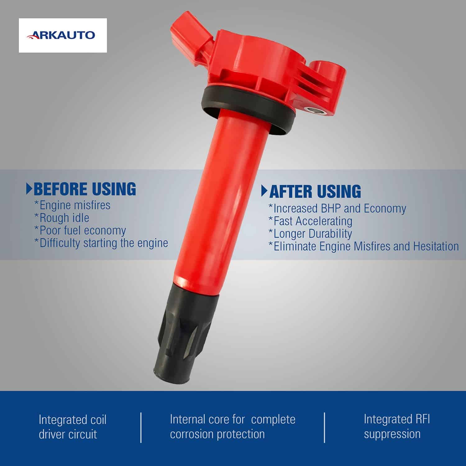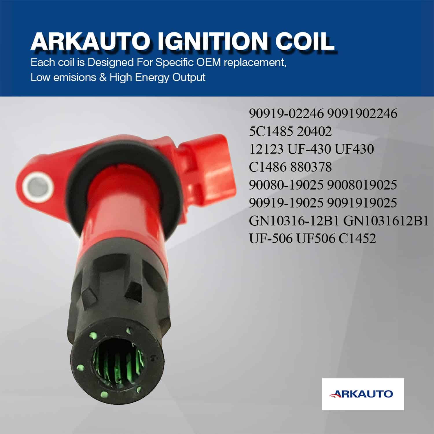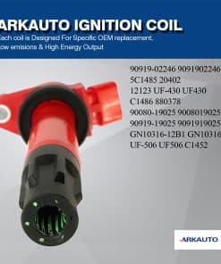Las bobinas de encendido ARKAUTO están diseñadas de acuerdo con los tipos originales de OE, que pueden reemplazar perfectamente sus bobinas originales defectuosas y funcionar como las originales. Esta bobina es un reemplazo para OE: 90919-02246, 9091902246, 5C1485, 20402, 12123, UF-430, UF430, C1486, 880378, 90080-19025, 9008019025, 90919-19025, 9091919025, GN1031612B1, UF-506, UF506, los compradores deben comparar el OE con sus coches originales cuidadosamente antes de ordenar para evitar comprar una pieza incorrecta y causar una pérdida innecesaria. Compatible con Lexus Es330 Rx330 Rx400h Toyota Camry Highlander Sienna Solara. Reduce problemas comunes de las bobinas de encendido como; arranque difícil o inexistente, tiempo de arranque prolongado, fallos de encendido, falta de potencia, cambios de transmisión inconsistentes, ensuciamiento de bujías, fallo prematuro del convertidor catalítico, mala economía de combustible, iluminación del indicador de check engine. Garantía limitada de 1 año – Por favor, utilice la guía proporcionada para verificar si esta pieza es compatible con su vehículo.