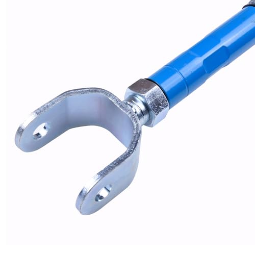 Material: Brazos de control de camber ajustables de acero. Cabeza de acero y tuerca de bloqueo. Cojinete de bola esférica de acero inoxidable en el extremo ajustable. Tratamiento anódico para mejorar la resistencia a la corrosión, resistencia al desgaste y dureza.
